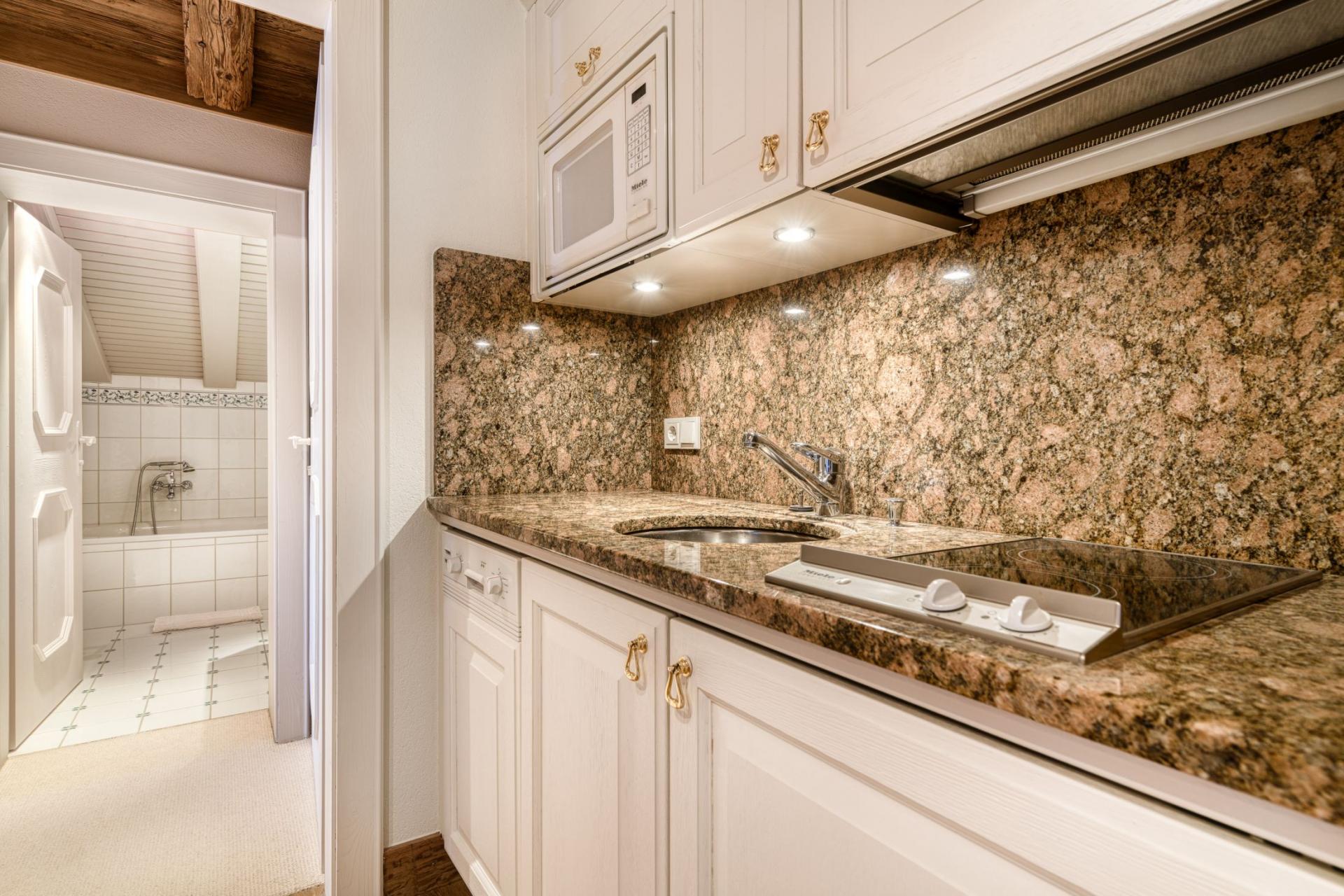 There is a plethora of living spaces for guests to choose from within Chalet Lilly F&F. Stylish open-plan living areas are there to greet guests of the chalet, decorated with sumptuous furnishings and coloured in a mix of pristine whites and woody browns that mimic the snowy alpine forests of outside. Relax on plush seating beside the fireplace and dine together around the spacious wooden table, before heading onto the expansive terrace and balcony areas, where you can marvel at the enchanting scenery. A smaller dining table offers a perfect spot for children's dinner or some casual drinks, which is found adjacent to the sizeable, fully-equipped kitchen.