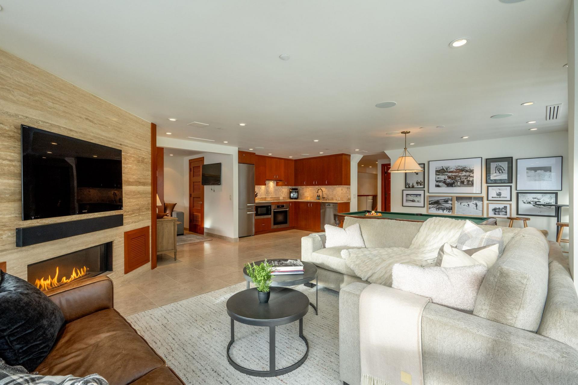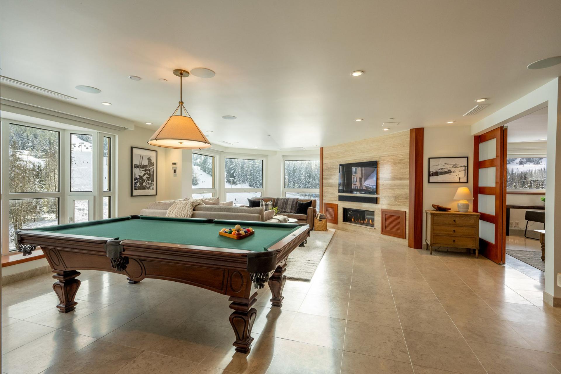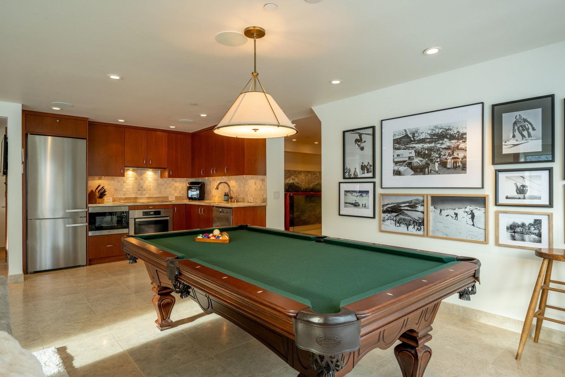 On the upper level of Le Chamois Penthouse, guests are treated to a secondary living area. This welcoming, convivial space functions as a TV lounge, benefiting from its own fireplace, alongside a second kitchen. There's also a pool table in here, ideal for fun competitions between members of your group.