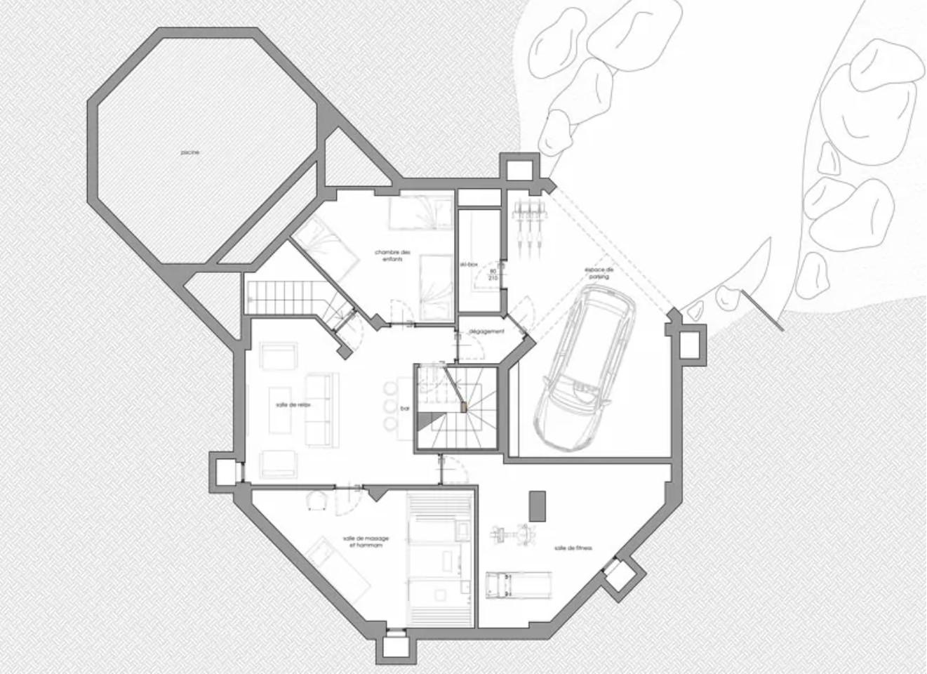 Relaxation and entertainment facilities are aplenty in Chalet Alta. An indoor swimming pool, which can be converted into an indoor-outdoor pool after opening its glass doors, comes complete with hydrojets - perfect after a day on the slopes. Set aside from the living area, it is ideal for parents to enjoy alone time whilst also keeping a watchful eye over the little ones splashing about. Downstairs, guests can make use of a sauna and steam room, separated by a shower, to further assist their relaxation in a zen setting. A massage table can be added to this room to ease any aching legs. Gym facilities and a TV snug lounge can also be found on the lower ground floor.