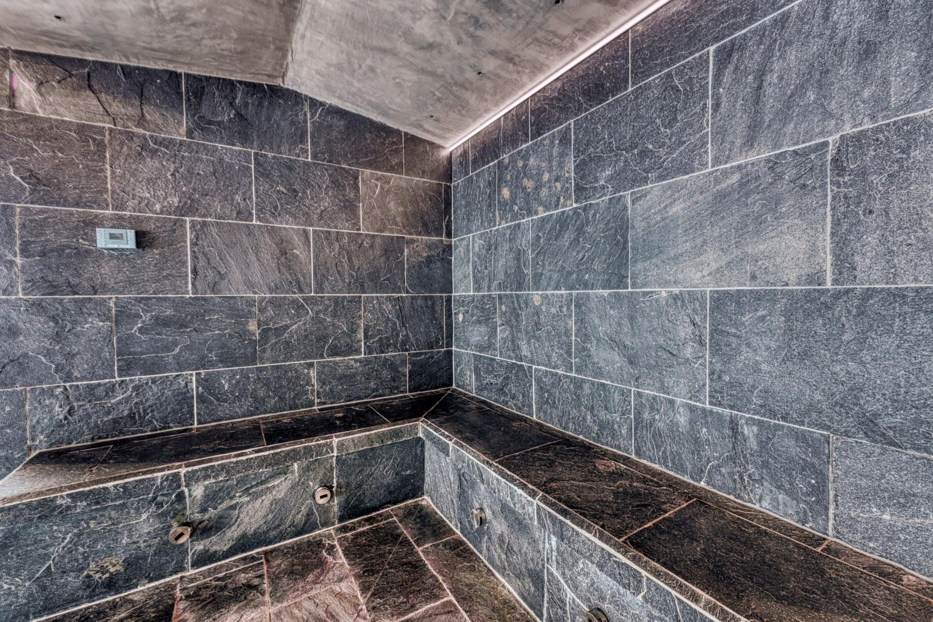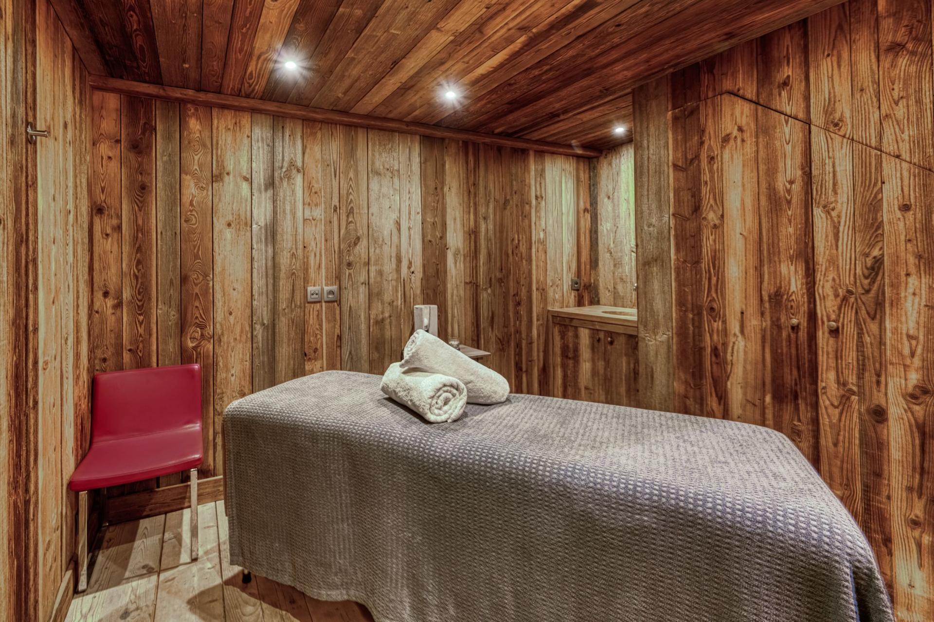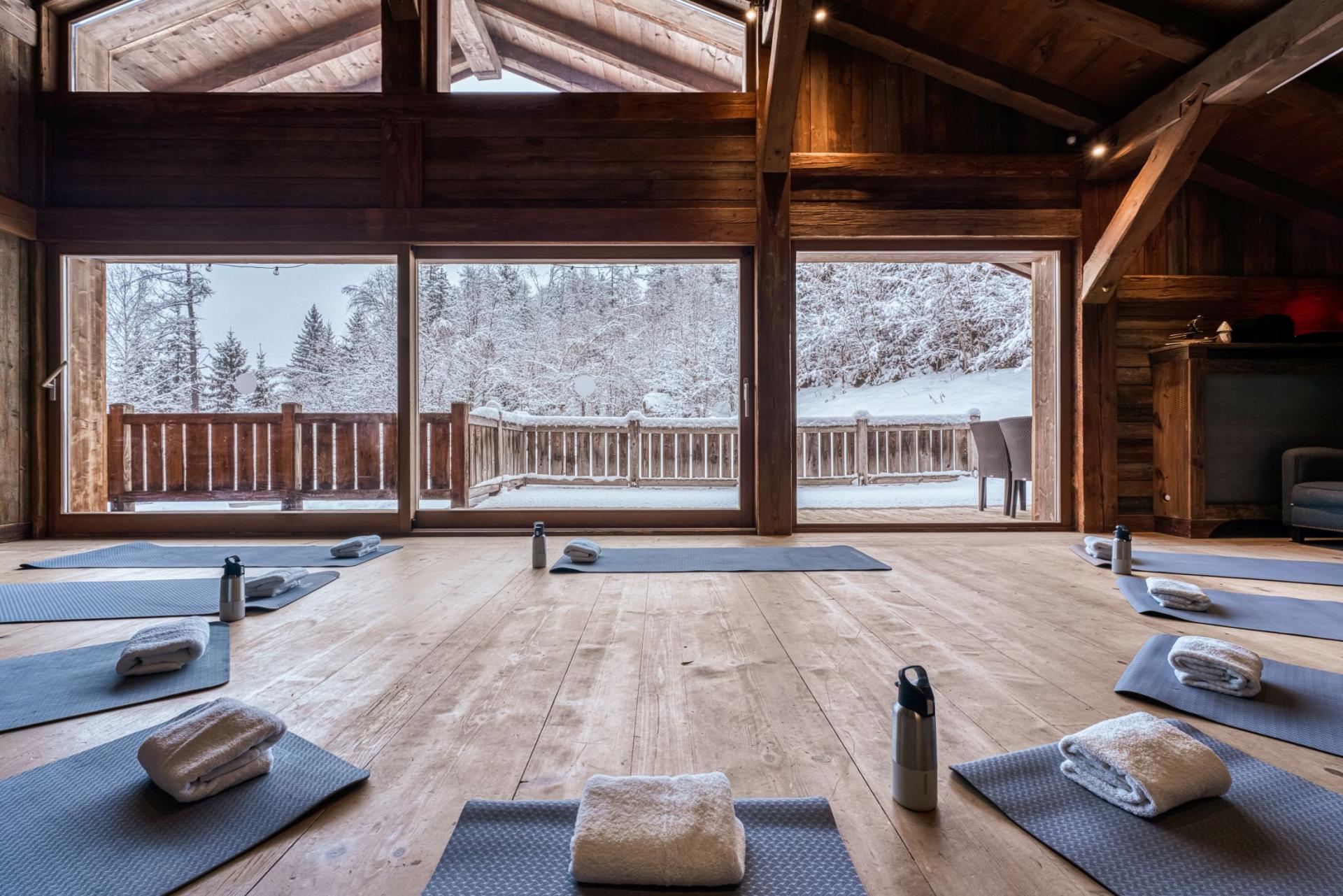 Also located on this upper level of Chalet Amazon Creek, you will find the spa area featuring a large sunken indoor Jacuzzi, steam room and sauna. For those looking to enjoy a massage or beauty treatment during your stay, there is also a separate massage room. Outside on the large terrace, you can step out, relax and take in the enchanting views of the surrounding mountain scenery. The garage at Chalet Amazon Creek also features a gym, where guests can exercise.