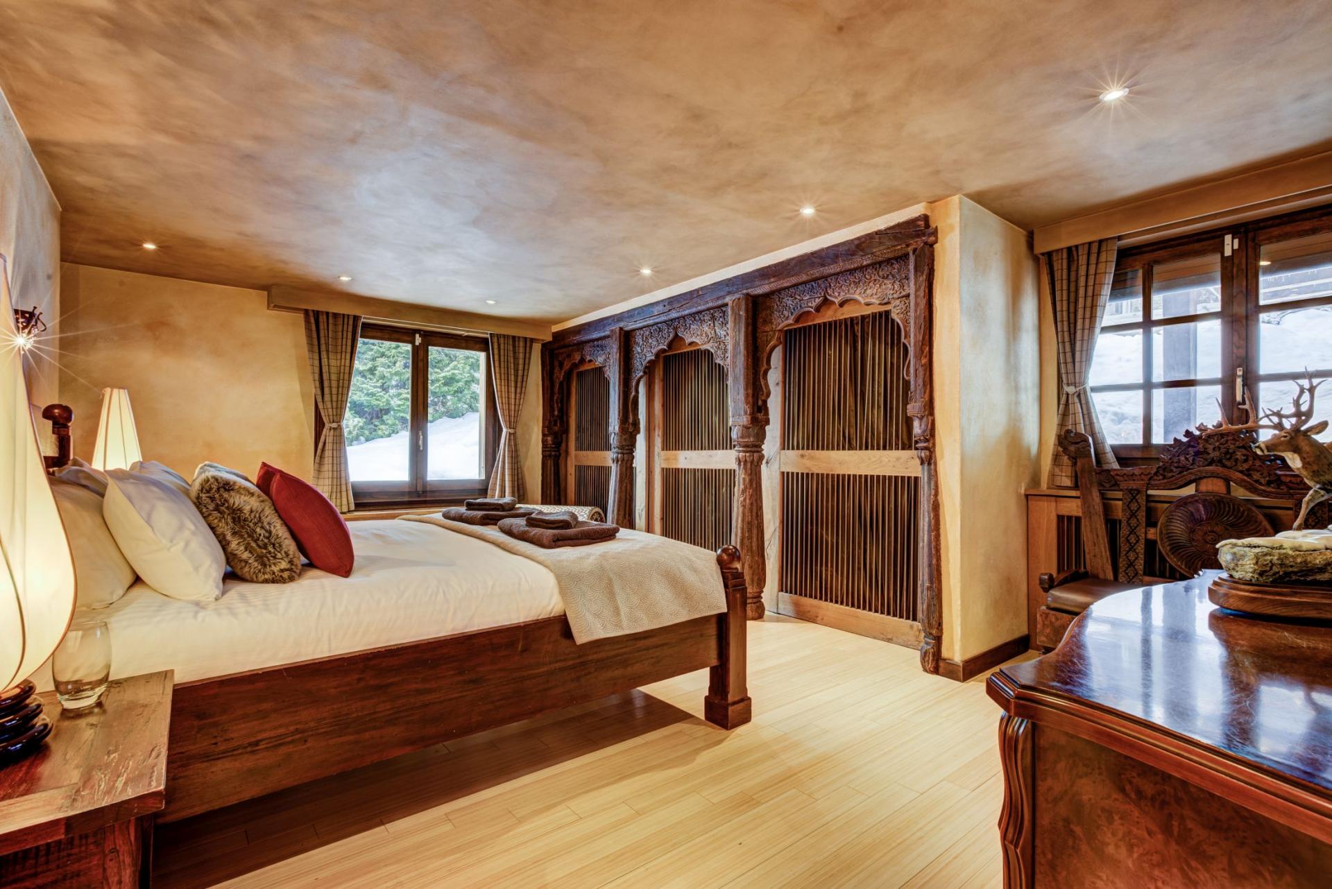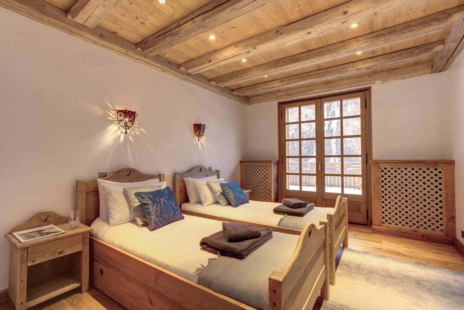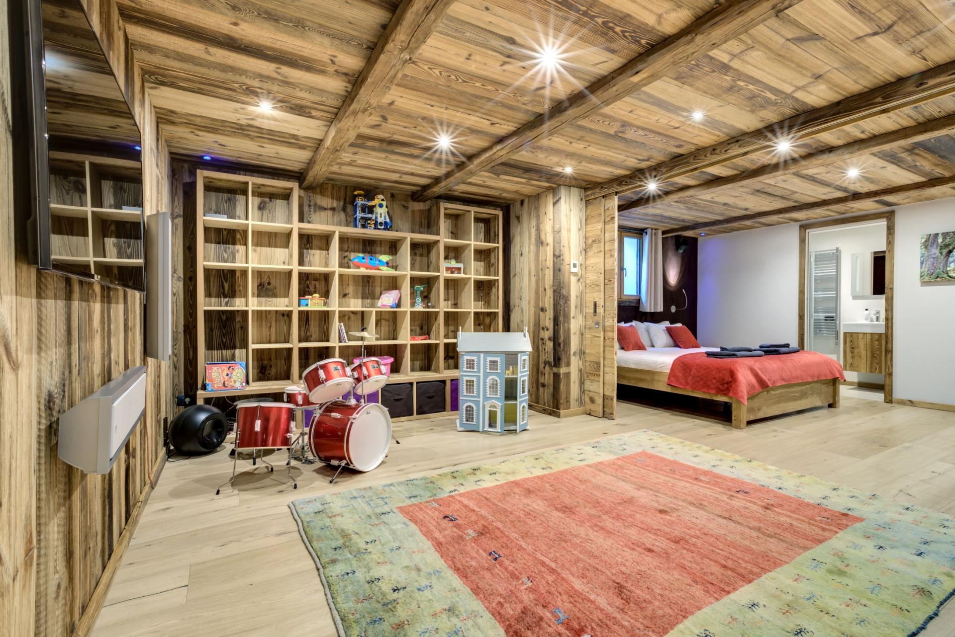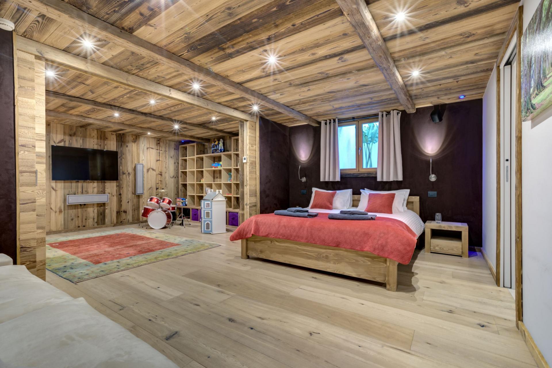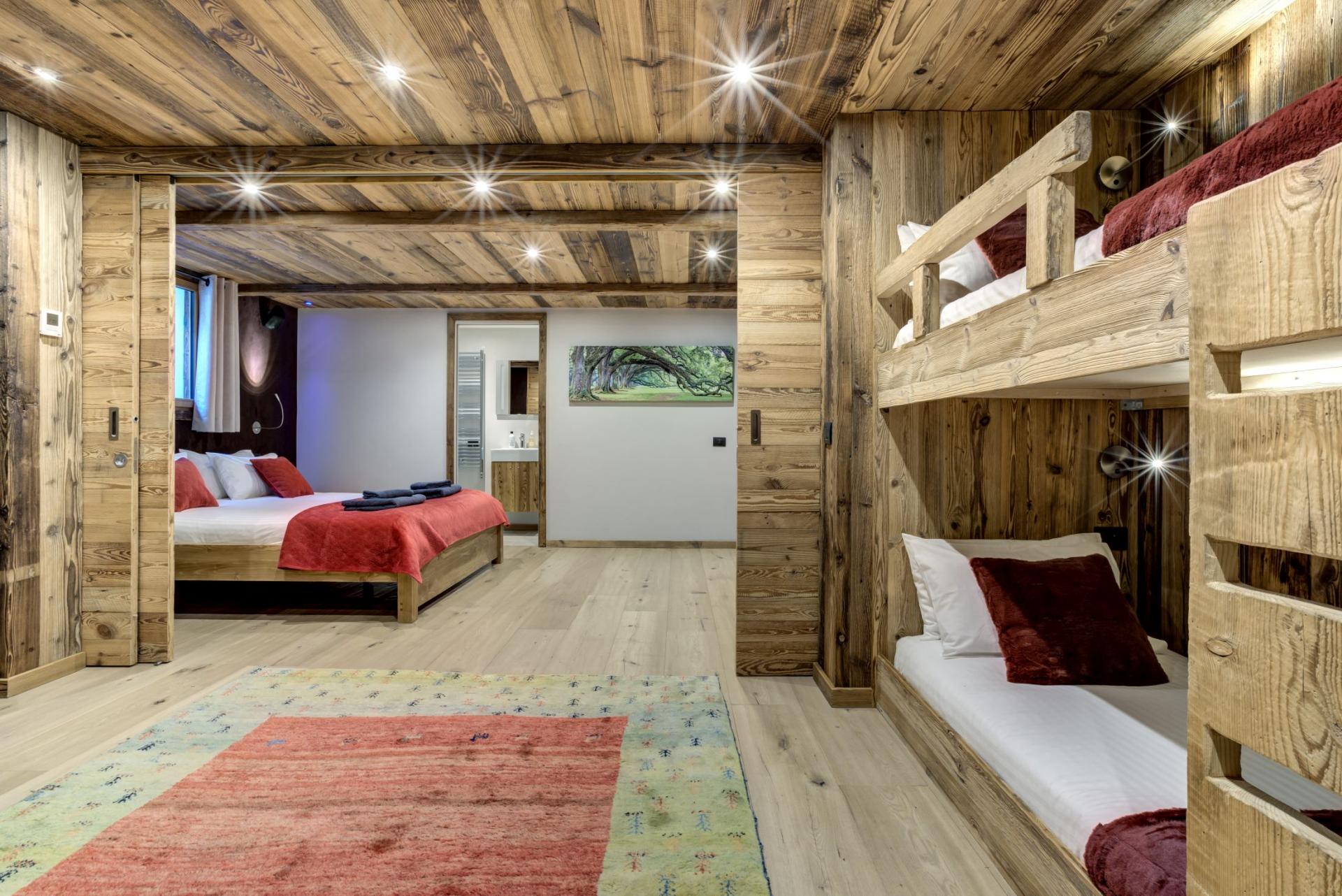 In total, there is space to accommodate up to 12 guests across six bedrooms in the chalet. The master bedroom, which comprises the top floor, has its own fireplace, bubble bath, steam shower and private sun terrace. Across the other floors of the chalet there are five additional bedrooms, three of which can be split into twin rooms. One of these bedrooms also has a bunk bed (sleeps 2) and a sofa bed (sleeps 2).