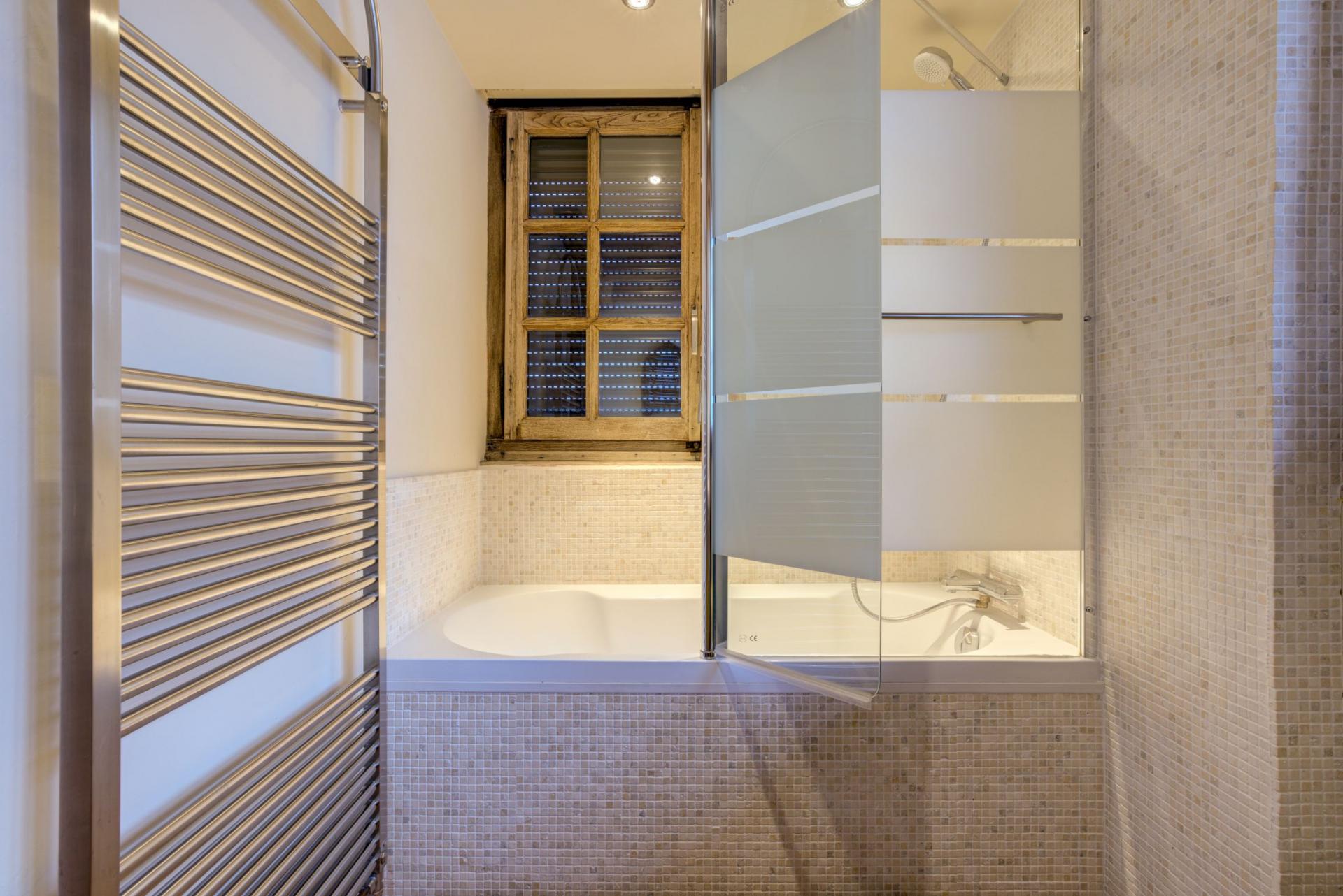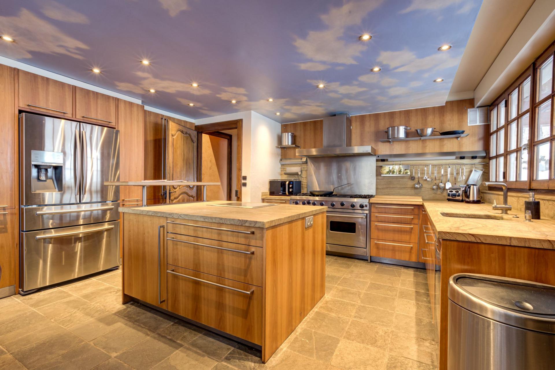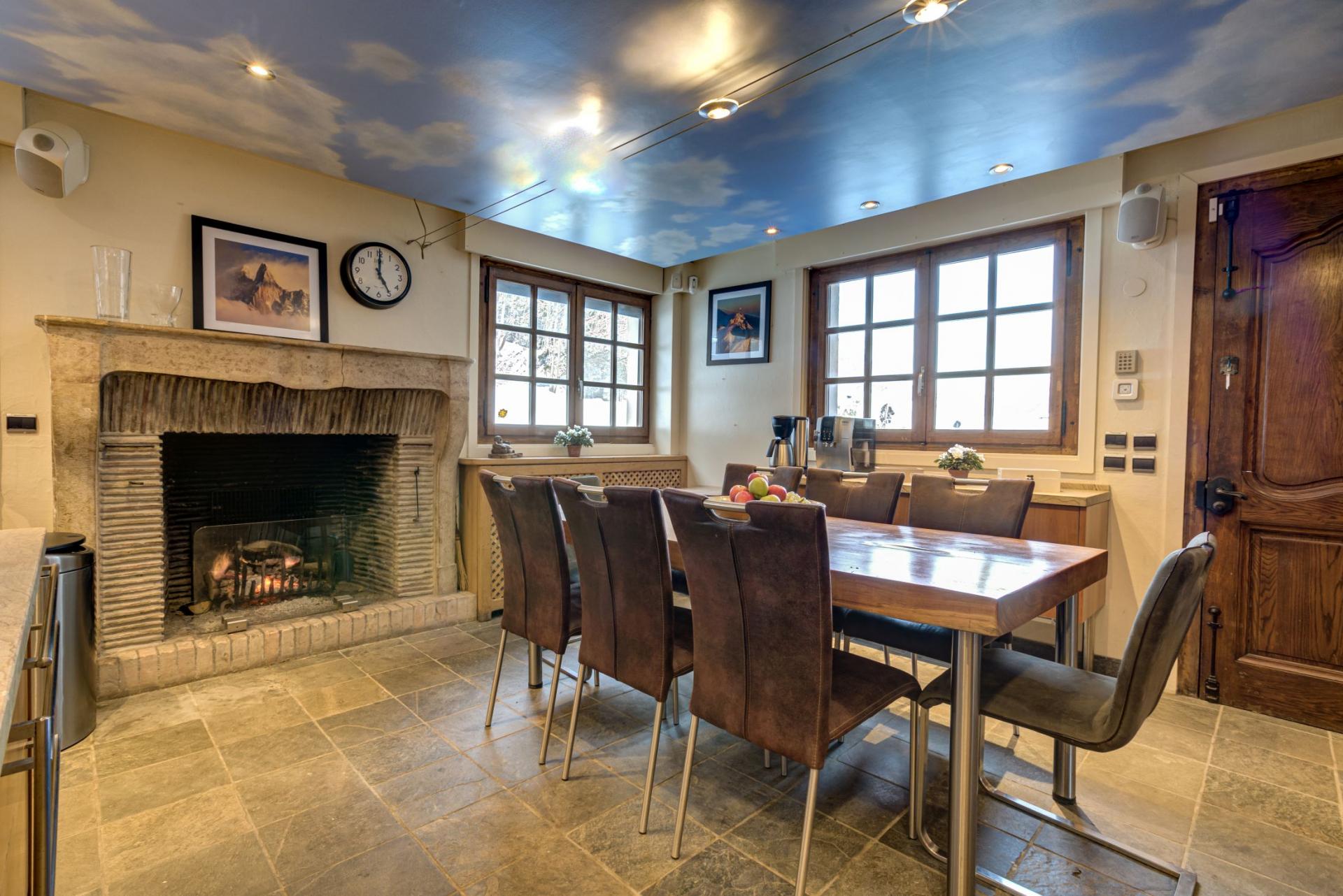 The kitchen is located opposite the dining area, just off of the main corridor. Fully equipped with a double fridge, professional oven and dishwasher, you have everything needed for a self-catered stay in Chamonix. Should some guests prefer to eat in separately, there is another dining table in the kitchen area, providing a brilliant social space. Here you'll find another fireplace, ensuring the chalet is kept cosy throughout.