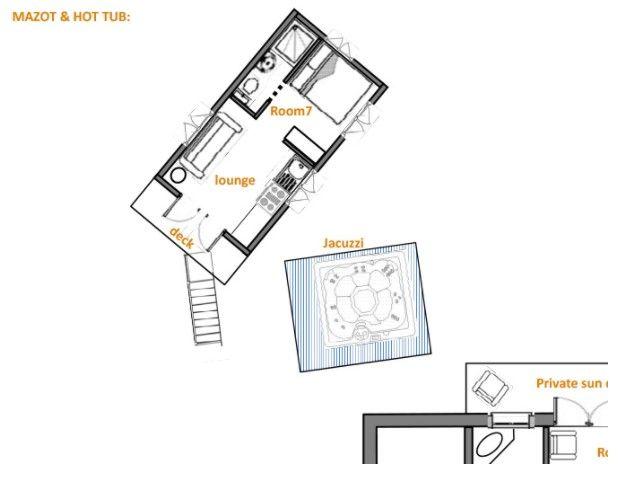There is also an exterior mazot which can be added for an additional charge. Here there is a a double bed, sofa area, kitchenette and shower room.