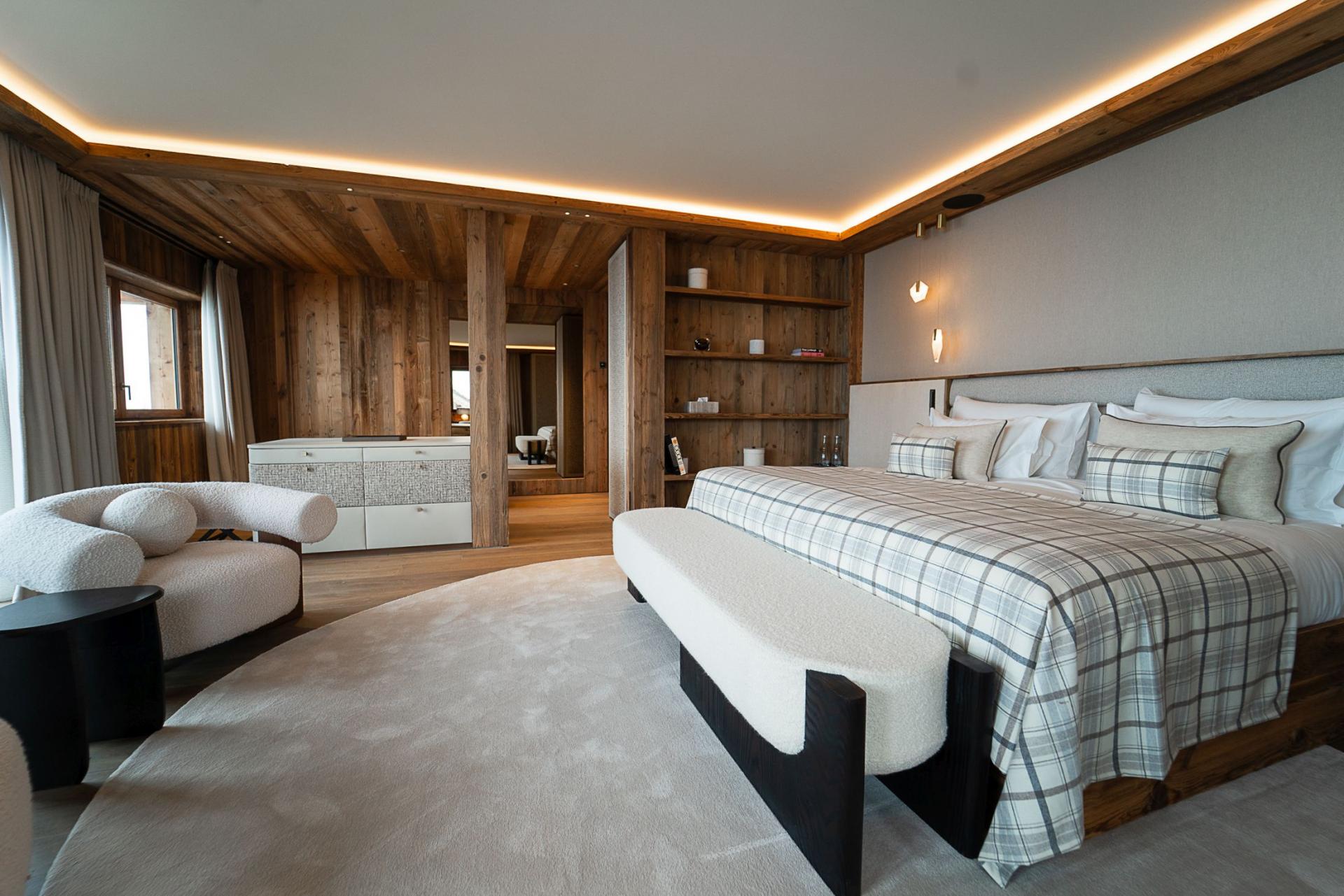 Chalet Moon 1850 houses seven bedrooms, with the capacity to accommodate groups of up to 12 adults and 2 children. The bedrooms are contemporary and luxurious, elegantly furnished with authentic wooden accents and interiors that foster that cosy chalet atmosphere. Across the property, you will find six double bedrooms, all with access to a terrace or balcony, and all completed by an en-suite bath or shower room. Two of these bedrooms function as grand master suites. The final bedroom is a children's room, with a double bed and multiple overhead bunks, perfect for any families with several kids in tow.
