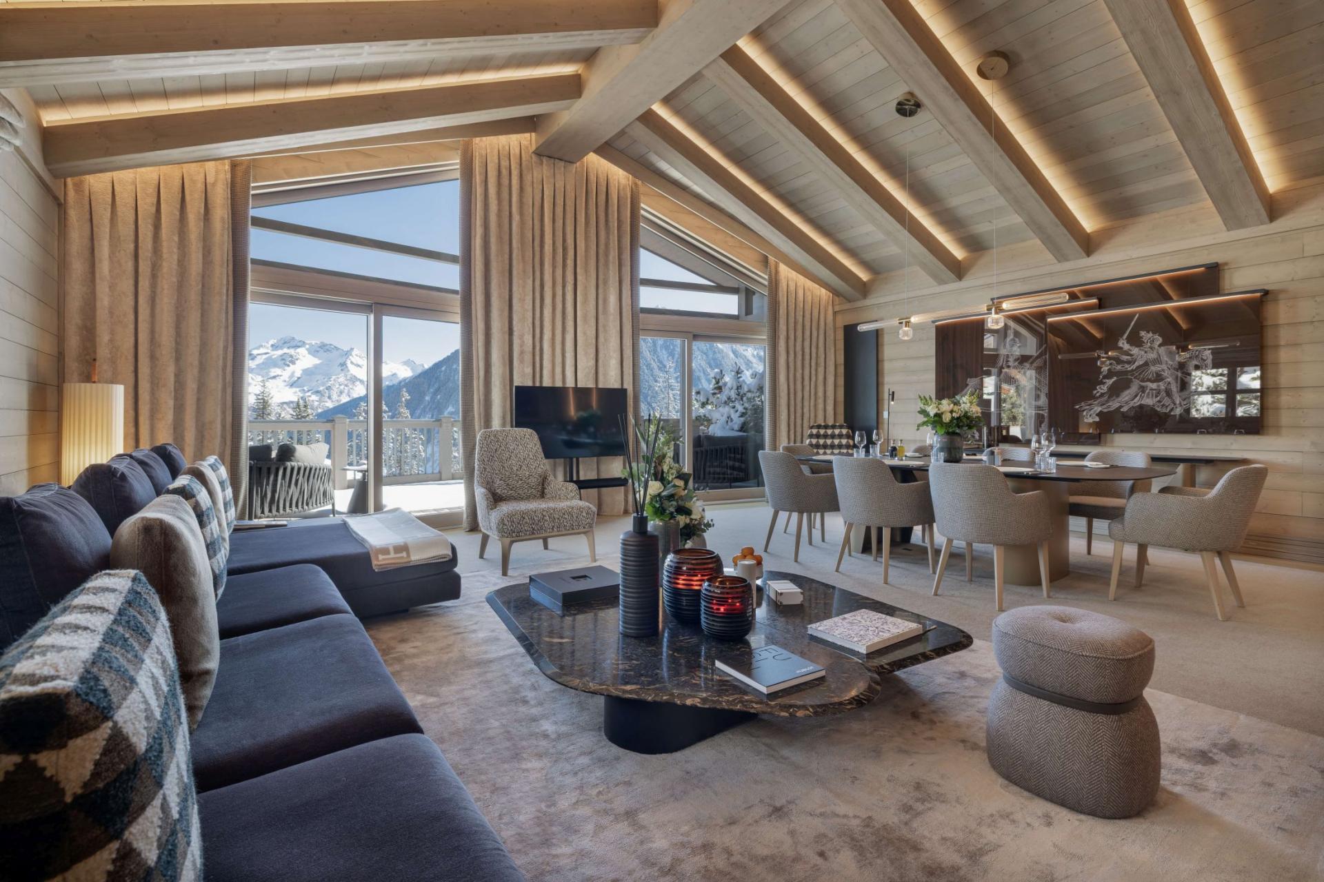 Le K2 Palace - Chalet Suite K6 features a comfortable TV lounge on its lowest space, a cosy space to enjoy a movie night on evenings when you're not making use of all the amazing hotel facilities.