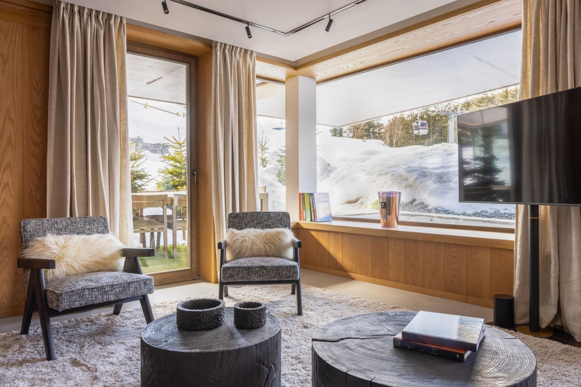 Sasha Apartment 3 in Courchevel 1850 is a luxury 3-bedroom apartment for up to 6 guests, occupying a prime location across the road from the mid-station of the Jardin Alpin gondola. Spread over 116m² of contemporary alpine luxury living space, this is a brilliant option for a smaller group heading on a luxury ski holiday to the Three Valleys.