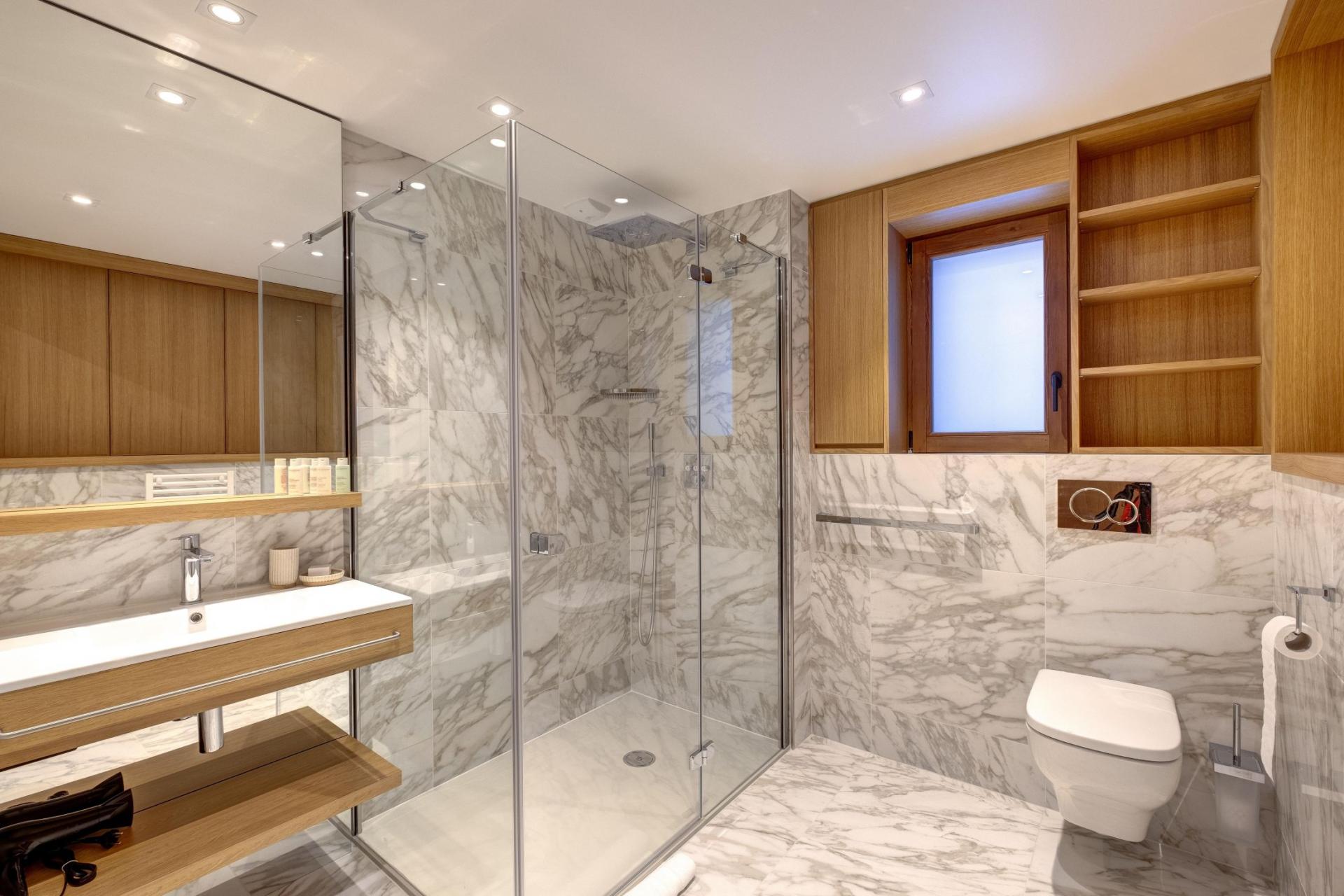 Chalet Belle Place 2 can accommodate up to 10 guests across 4 beautifully furnished bedrooms. Designed for comfort, the bedrooms are furnished with the intent of offering guests ample rest and relaxation. The bedrooms all feature an elegant, contemporary alpine style, with large windows that invite plenty of natural light into the rooms, to enjoy a warm, sunbathed morning to start your day. All bedrooms provide balcony access and en-suite shower room facilities. One of the four double rooms contains an additional set of bunk beds for two additional guests.