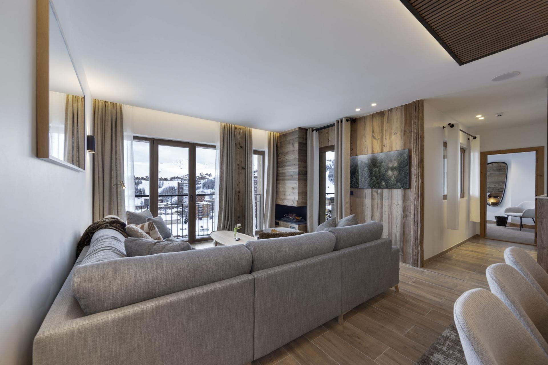 Guests can make the most of direct access out onto the Mont St Sauveur blue piste, as well as finding the ski lifts of Bécoin and Lovatiére, just a stone's throw away. Just beyond them, a two-minute ski away, is the Colorado chairlift & FuniPlagne Grande Rochette cable car, which is used as a meeting point for the ski schools, making this a great location for families and groups with beginners.
