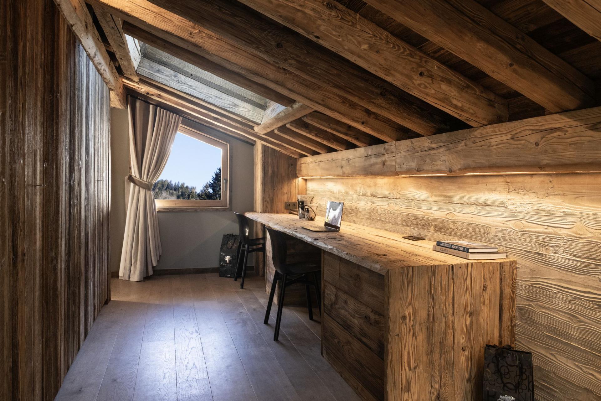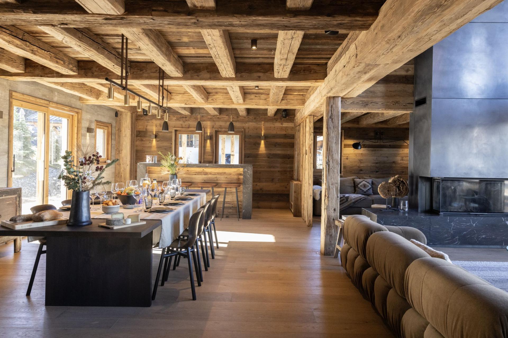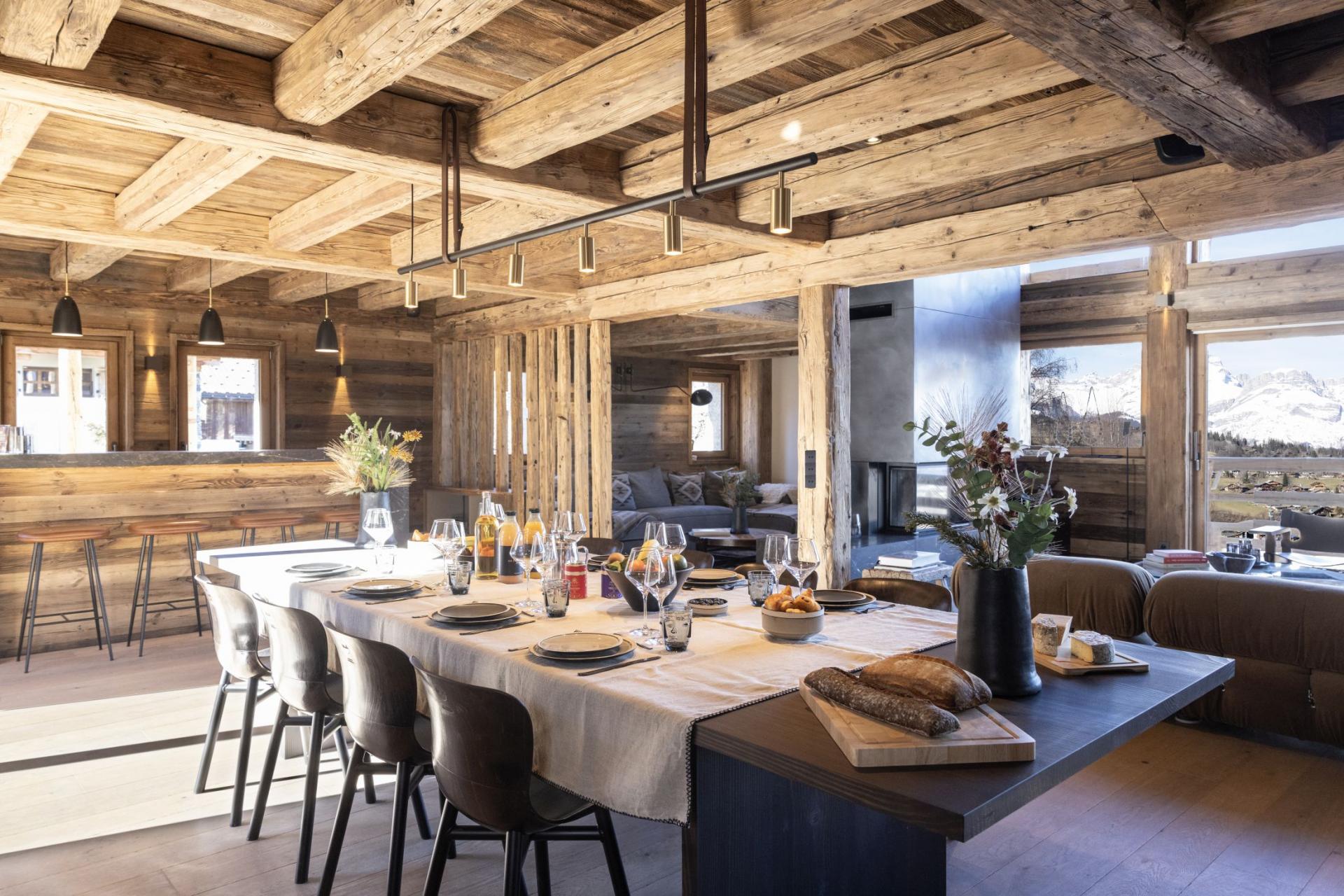 For any guests who wish to escape and fully admire their mountain surroundings, Le Chalet de La Croix features a covered terrace and balconies in which to do so. The main terrace leads out from the main living floor, furnished with tables and chairs, to enjoy an alfresco coffee or après-ski drinks amongst the snowy landscape.