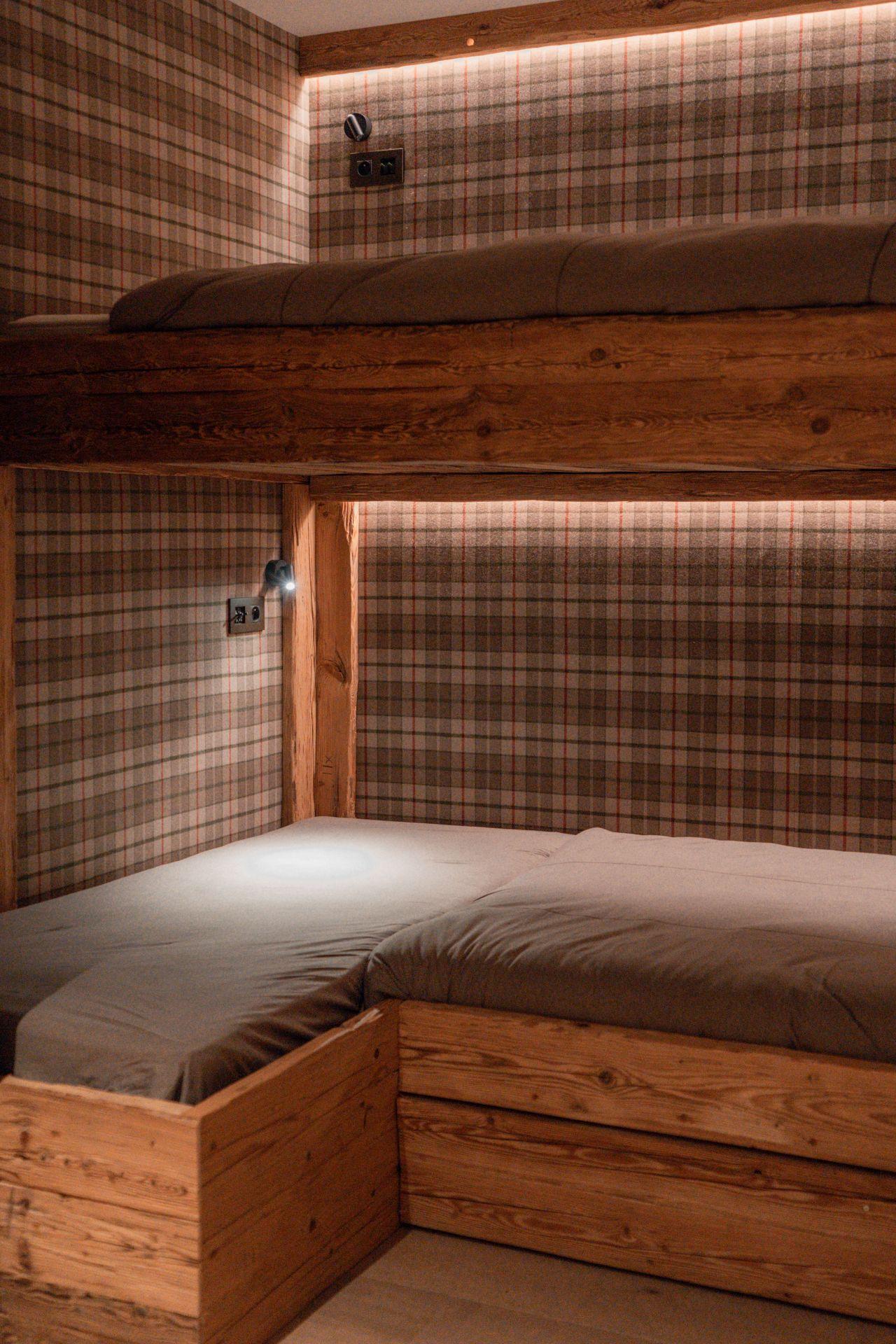 In total, there are seven bedrooms throughout Le Chalet de La Croix's four floors, suitable for accommodating up to 10 adults and 5 children. Similar to the rest of the property, all rooms adopt a simple, yet elegant, modern mountain style, featuring wooden cladding and comfortable furnishings. The property offers two master bedrooms with accompanying lounge areas, found on the first and second floors, to ensure no arguments. There are three other doubles to choose from, two of which benefit from en-suite facilities for convenience. The younger members of the group will be free to settle into the two remaining bedrooms, which are a bunk bedroom and a children's bedroom that features three single beds.