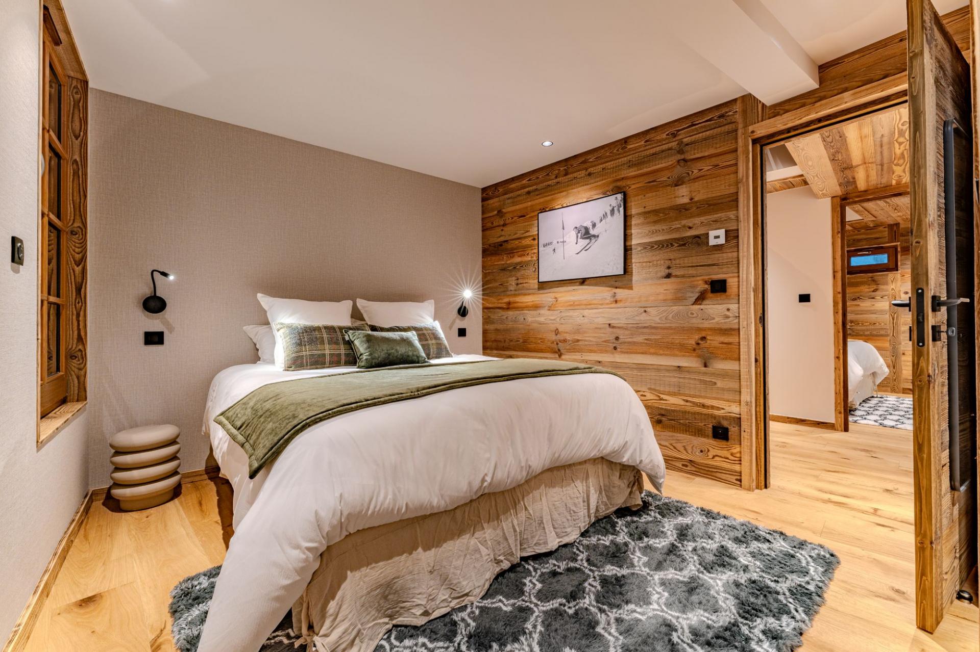 Between 3 double bedrooms and a children's quad bunk room, Le M Chalet has space to welcome groups of up to 6 adults and 4 children. The bedrooms are comfortable and inviting, with plump, soft bedding, authentic wooden interiors, and understated decor. The top floor is dedicated to the property's master suite, with a private balcony and luxurious en-suite shower room. The other two double bedrooms also come en-suite, located on the lowest level of the property alongside the bunk room, ideal for families with children.