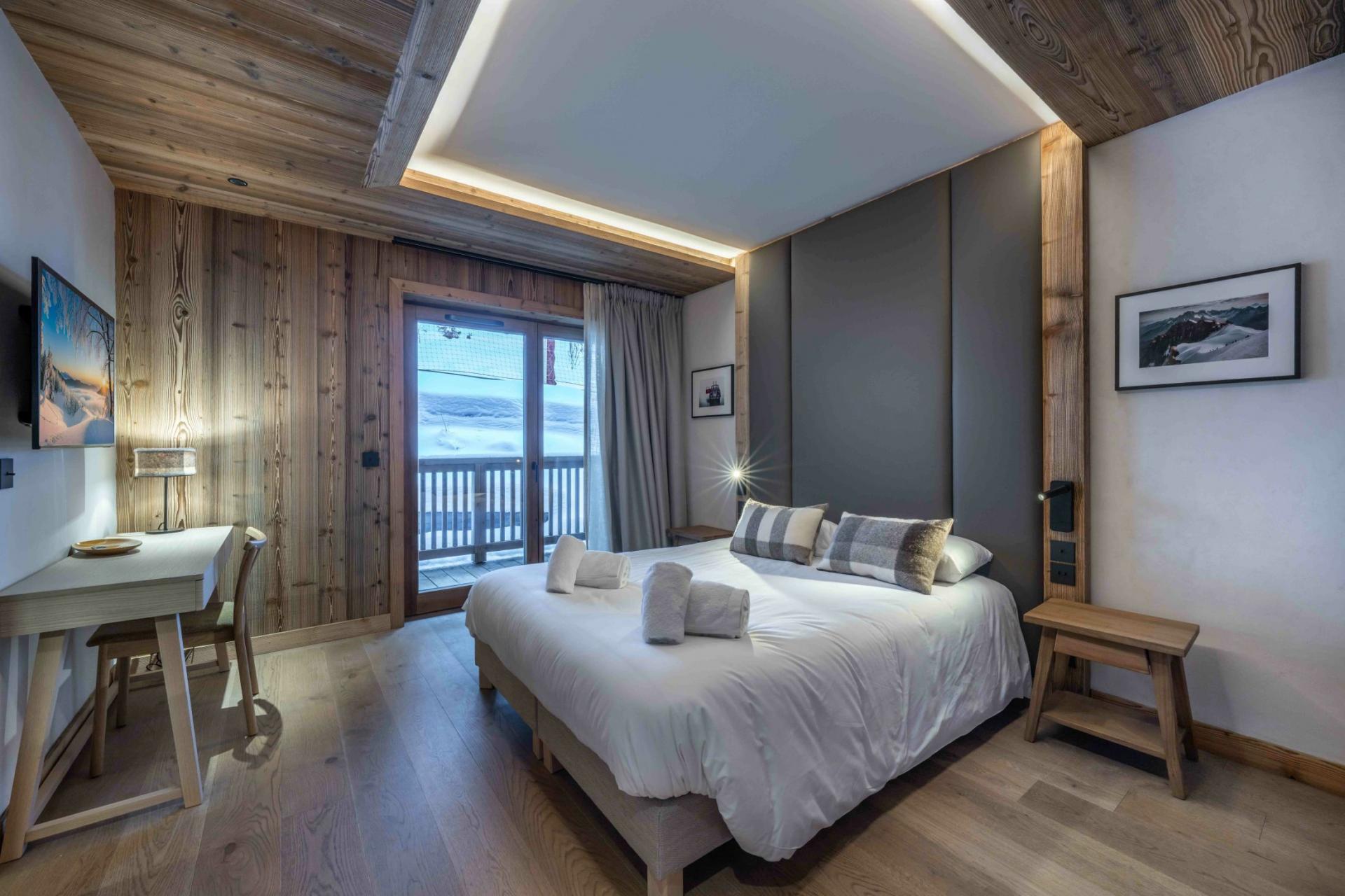 Apartment Bois des Ours 701 in Méribel is a luxurious ski in/ski out apartment, providing groups of up to 10 adults and 2 children an elegant alpine home to call their own for a week in this popular Three Valleys ski resort. Spanning 209m², this duplex apartment features 5 spacious double bedrooms and a bunk room, chic living spaces, and access to a fabulous assortment of shared wellness facilities within the residence building.
