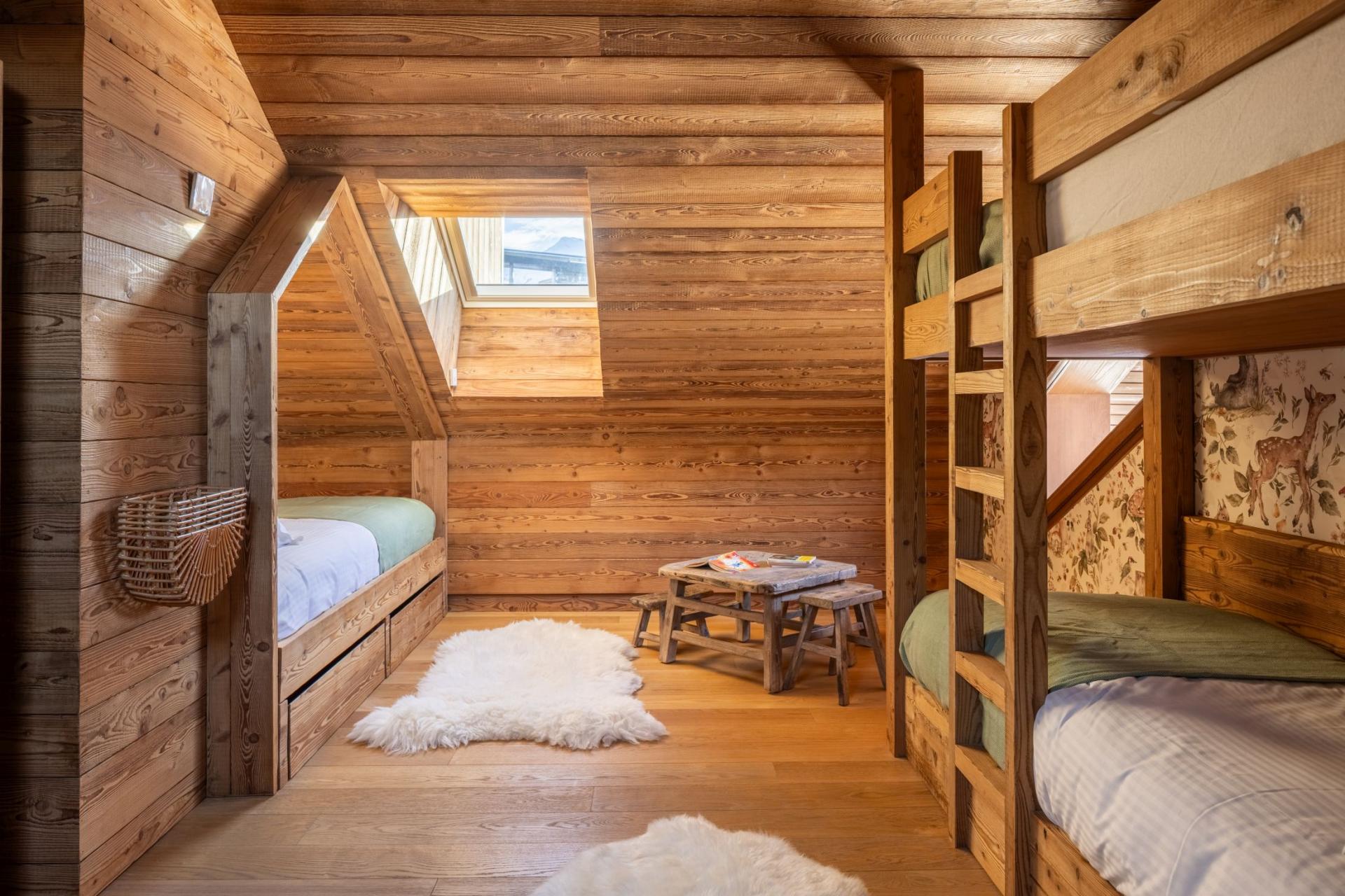 Apartment Nanuq's alluring bedrooms blend contemporary and traditional alpine interiors. Reclaimed wood features and modern furnishings work in harmony to create a cosy alpine atmosphere, ensuring a great night's sleep. The master double bedroom sits on the first floor, with an en-suite bathroom and access to the wraparound balcony. There are five more double bedrooms and a bunk bedroom on the top floor that sleeps two guests. The two top floor bedrooms share use of a separate bathroom, whilst the other bedrooms all have en-suites.
