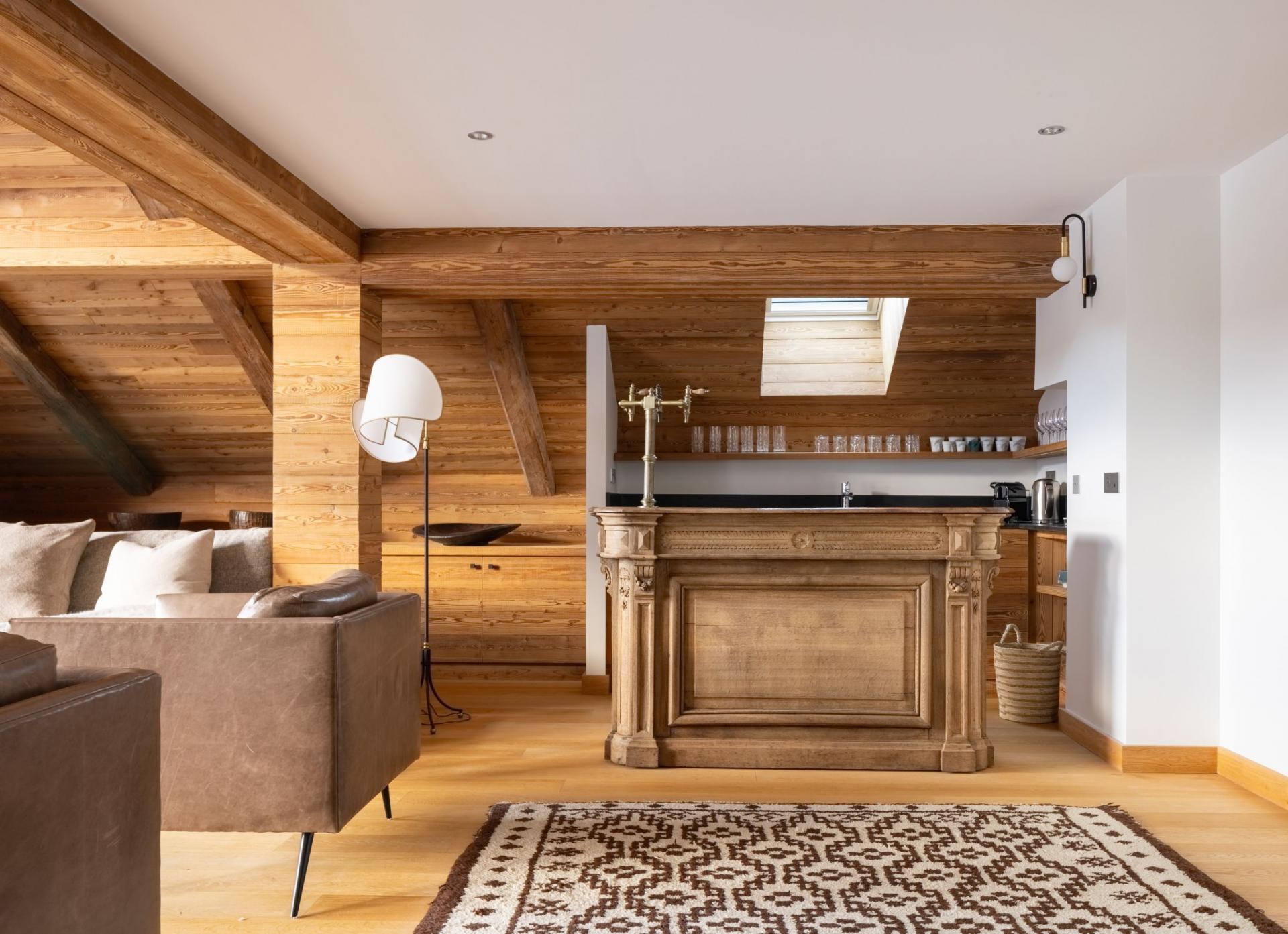 Climb the staircase to the middle floor of Apartment Nanuq, where you shall find a revitalising Hammam to breathe new life into your legs after a demanding day's skiing. There's also a small bar area, positioned between a reading nook looking down on the floor below, and the upstairs TV lounge. Its plush sofa sits in the light of the floor to ceiling windows that guide you onto the upper balcony. Where better to indulge in a homemade cocktail at the end of a successful ski day.
