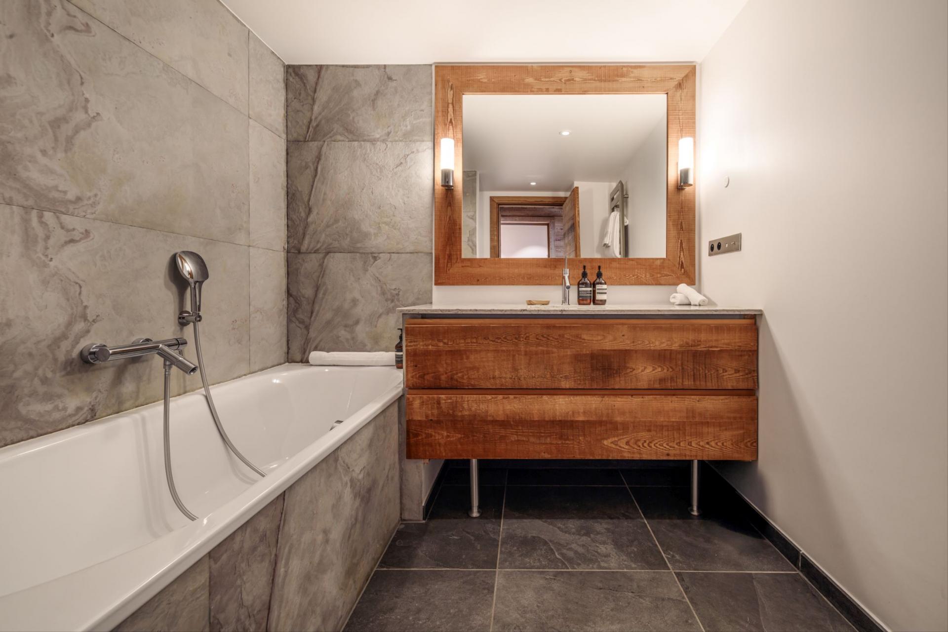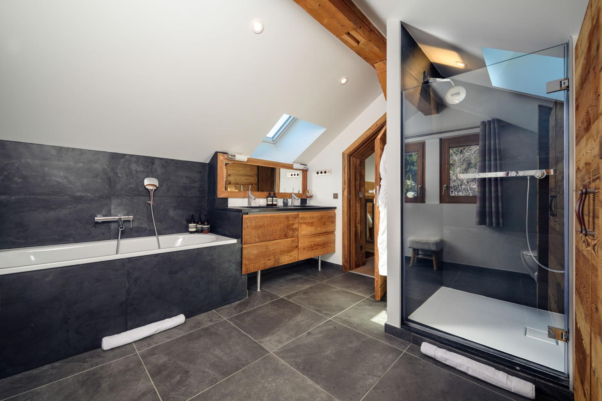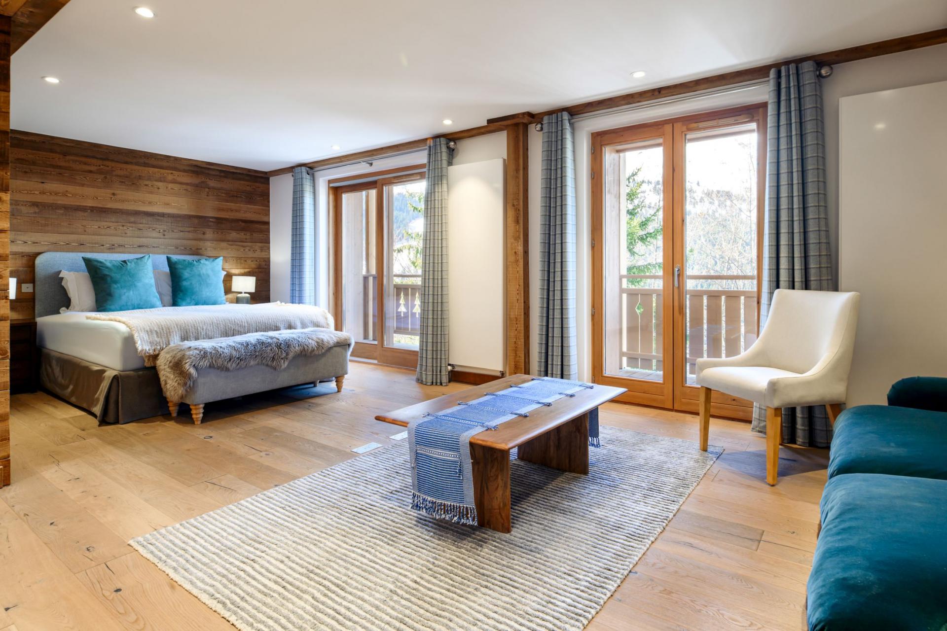 Perfect for groups of 10 guests, Chalet La Folie's five inviting bedrooms allow for undisturbed night's rests. The rooms are homely and light, decorated with light tones and bright furnishings that meticulously fill the spaces. All bedrooms have access to a shared or a private balcony, and the ground floor bedroom has access to the terrace with the outdoor hot tub. In addition, all except one bedroom, have en-suite amenities. For flexible sleeping configurations, four of the double bedrooms can be split into twin bed arrangements.