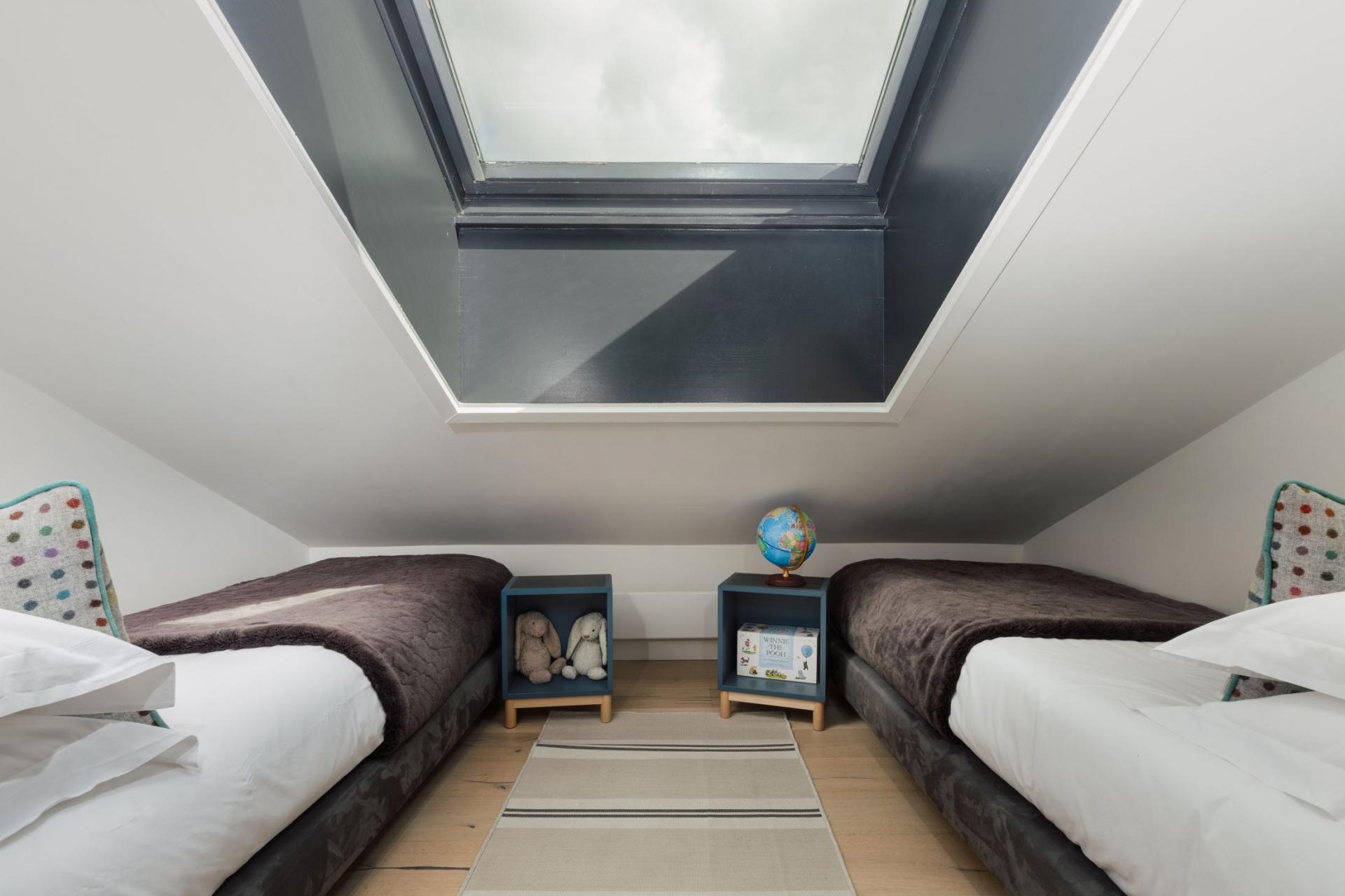 Apartment La Muse accommodates up to 9 guests across four bedrooms, split between the property's two floors. Each room adopts a minimalistic style with white walls and dark wooden headboards which contrast well with other light wooden accents. Three doubles can be configured as twin-bed set-ups for flexible sleeping configurations, two of which also benefit from access to private balconies. Another room has an additional single bed within its layout, offering further flexibility for friends and family.