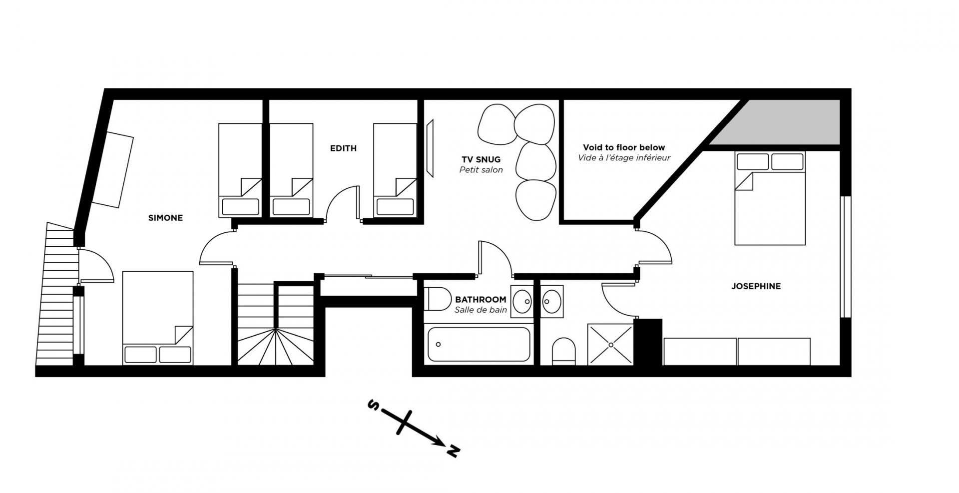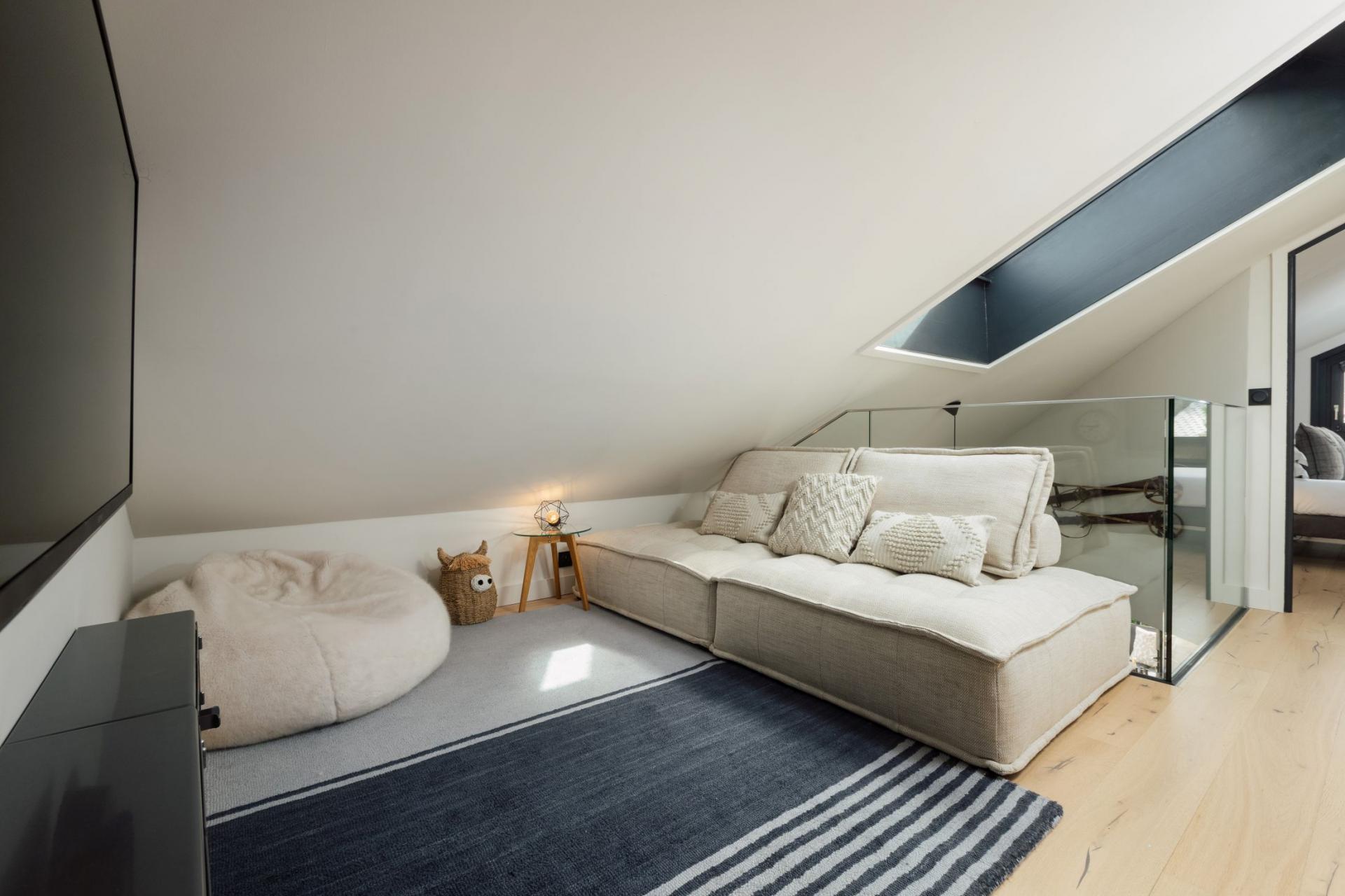 From the living area, step outside onto a cosy balcony, complete with outdoor furnishings, to sit and take in the surrounding valley views. Alternatively, for chill time inside, head to Apartment La Muse's top floor to enjoy the TV snug for a moment's peace, catching up on your favourite show or downtime reading.