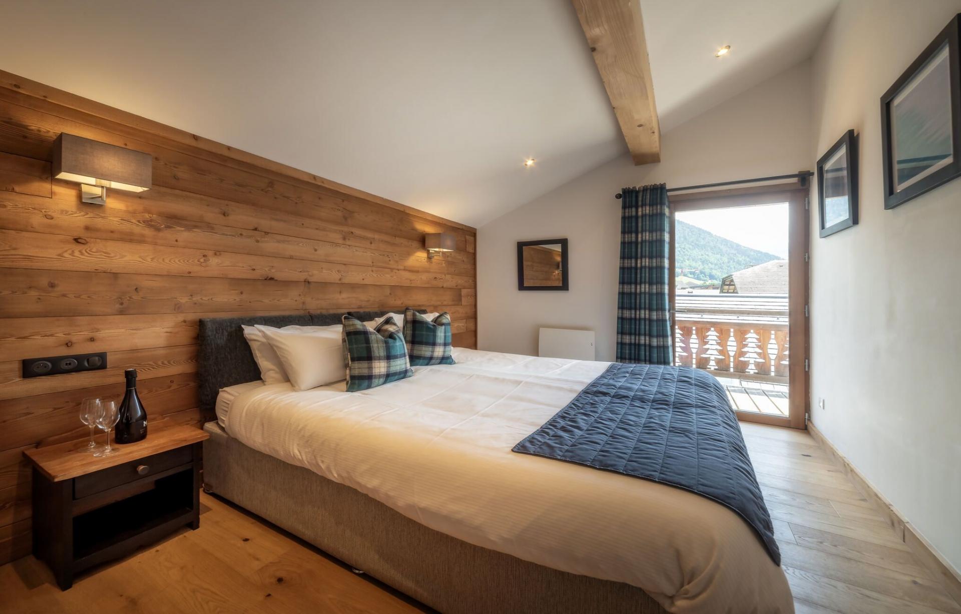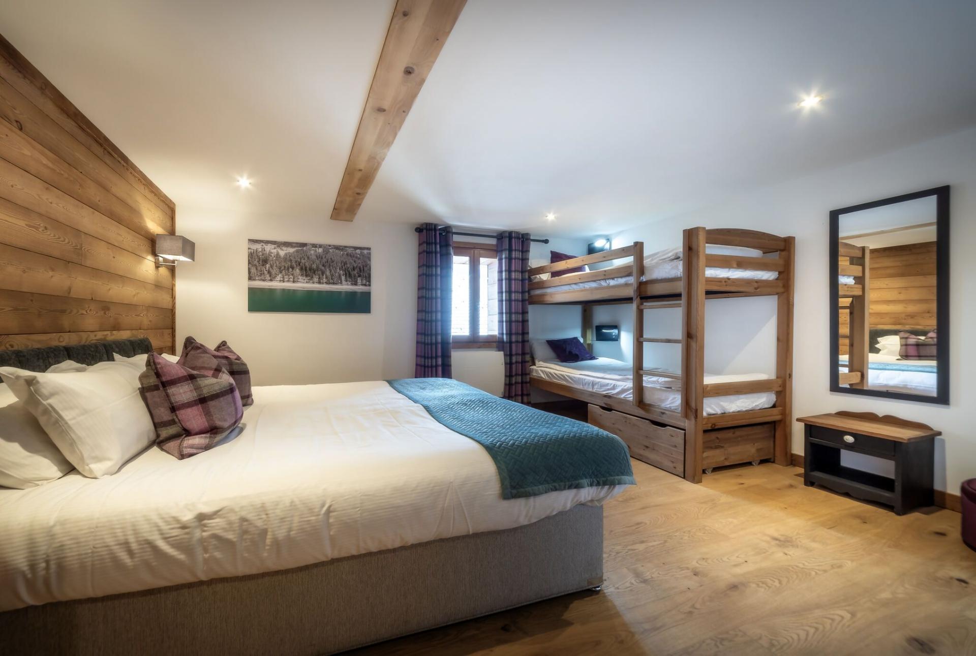 Chalet La Ferme is equipped to welcome groups of up to 14 guests, who can be accommodated across six double bedrooms. The rooms are warm and inviting, with wood interiors that hearken back to the chalet's farmhouse roots, and plush furnishings that provide a sense of luxury. All six bedrooms can be offered as twin rooms instead, and one bedroom has an extra set of bunk beds for two additional guests, offering great flexibility for sleeping arrangements. All rooms come en-suite, and all but one bedroom provides direct access to a private or shared balcony.