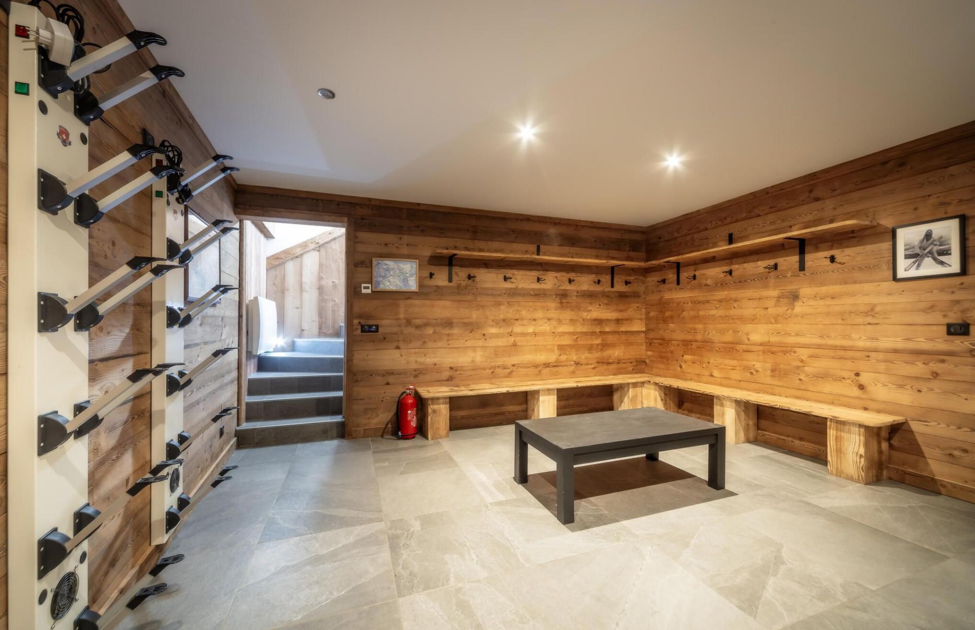 The chalet has a large ski room with boot warmers, private parking for two cars opposite the chalet, and laundry facilities.