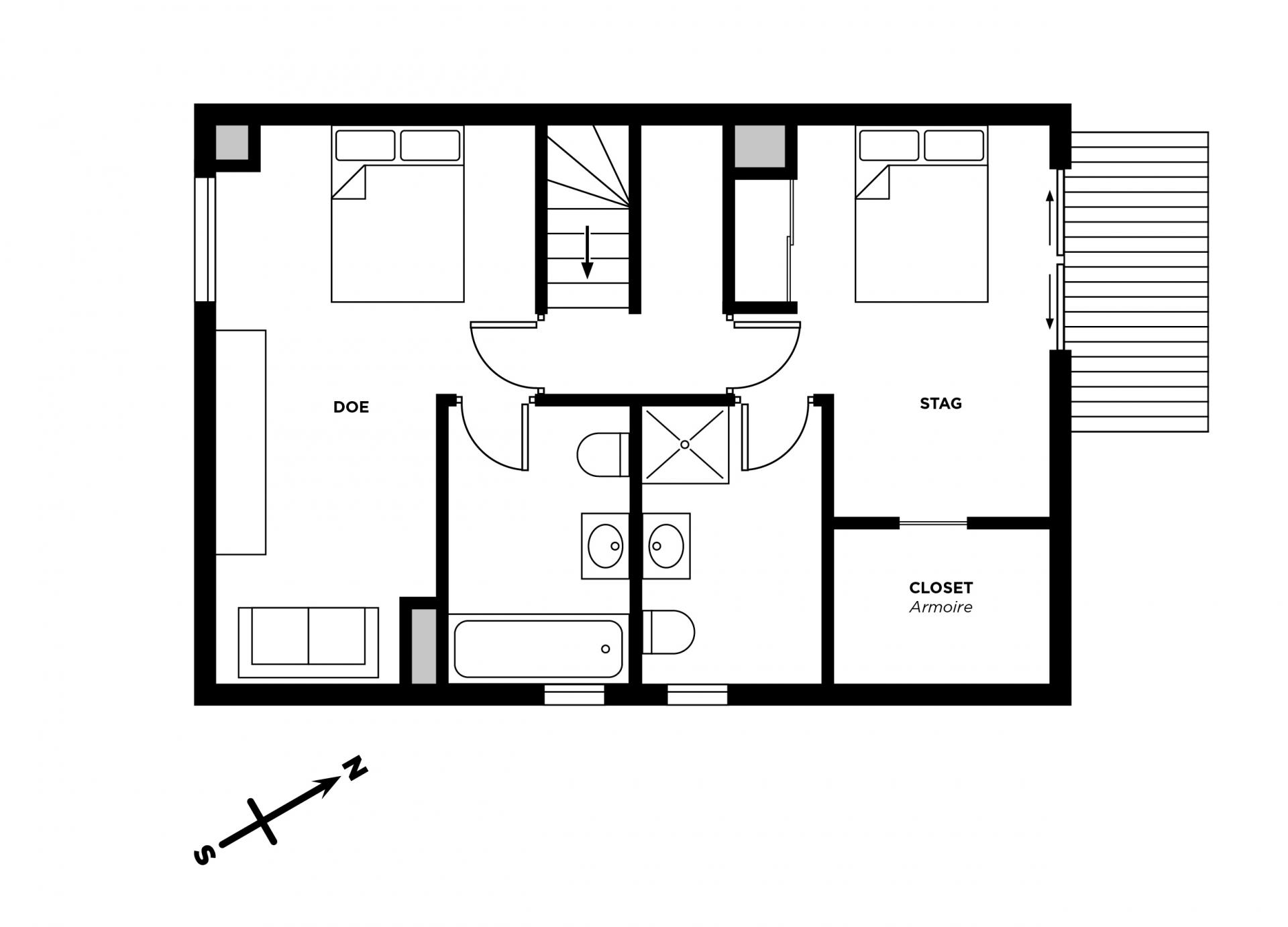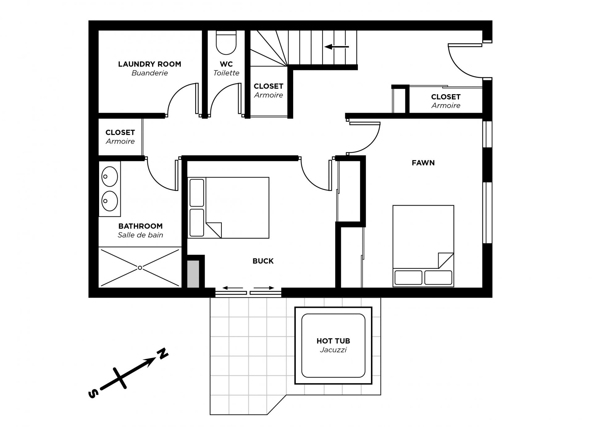 Accommodating 9 guests in 4 bedrooms, Chalet Le Faon is ideal for friends and families looking to explore the Portes du Soleil ski area. All bedrooms have been named after different deer genders and age stages, keeping to the property's theme, exuding style and a calm ambience throughout. Two bedrooms on the top floor are fitted with en-suite facilities with either a bath or shower. The Stag bedroom also opens out onto a balcony for guests to enjoy their own private slice of the valley, while the Doe bedroom offers a sofabed suitable for a child. On the ground floor, the Buck bedroom opens out onto the terrace space, where guests will find the outdoor hot tub. The two bedrooms on the ground floor share a bathroom and toilet. All 4 bedrooms can be configured with either double or twin beds for complete flexibility.