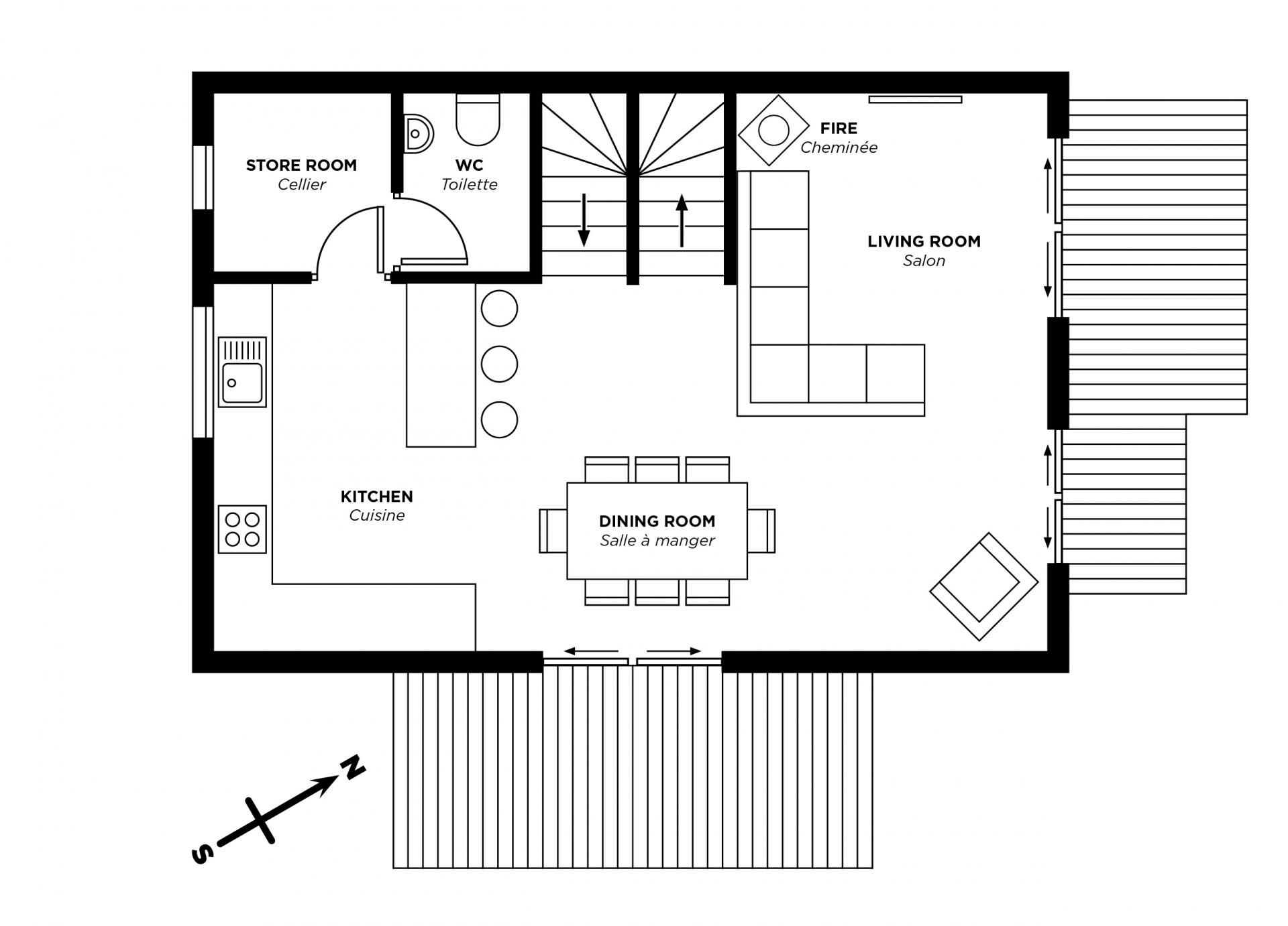 Chalet Le Faon boasts a private outdoor hot tub on the ground floor terrace, leading out from on the chalet's bedrooms. Perfect after a hectic day on the slopes, prepare to be welcomed by the warm waters, slipping away and relaxing until dusk turns into night. From the hot tub, you will also be able to see the herd of deer that live in the field at the back of the chalet, from which the chalet gets its name, Faon.