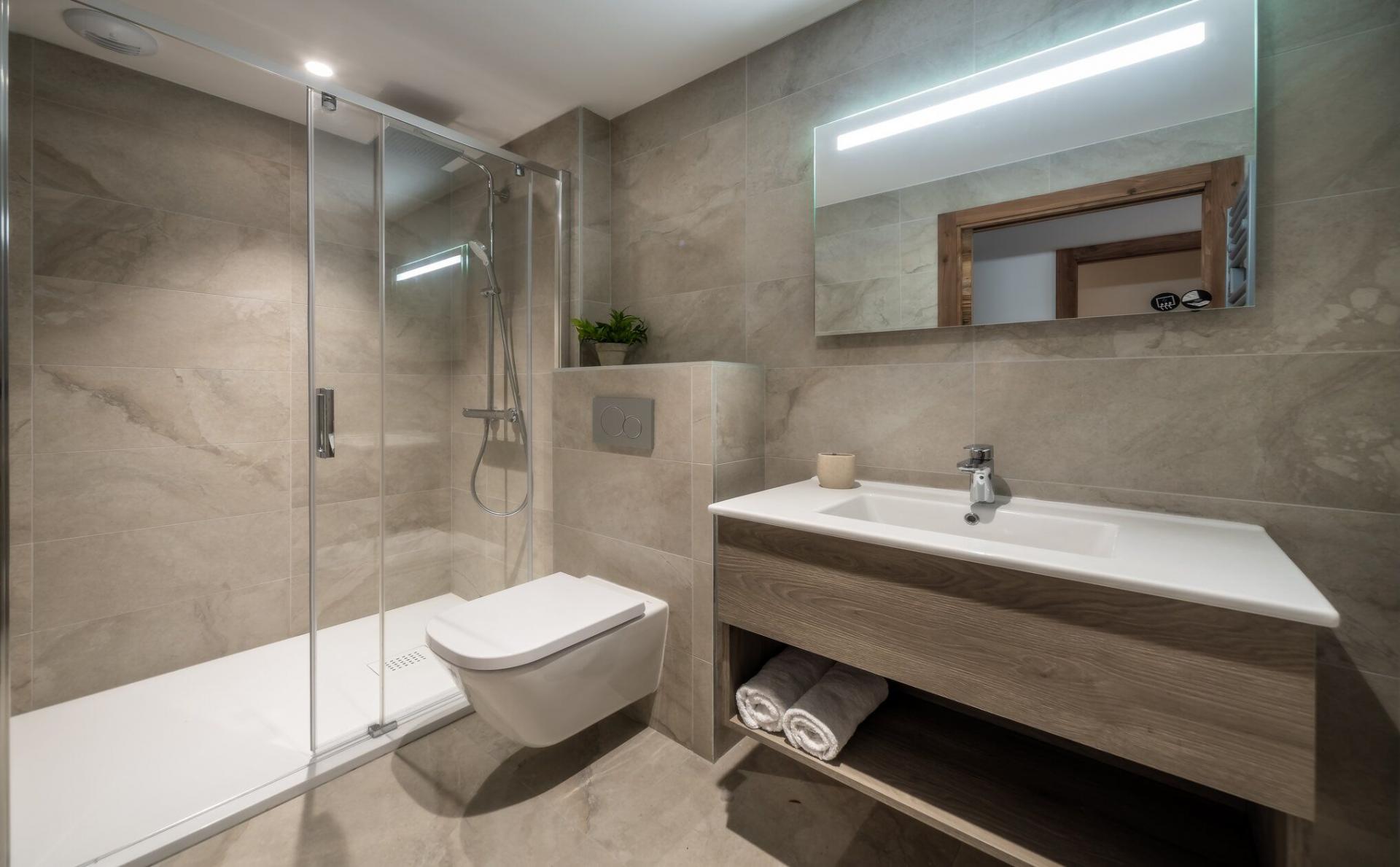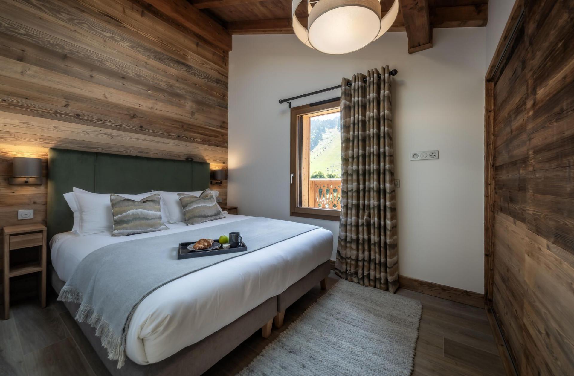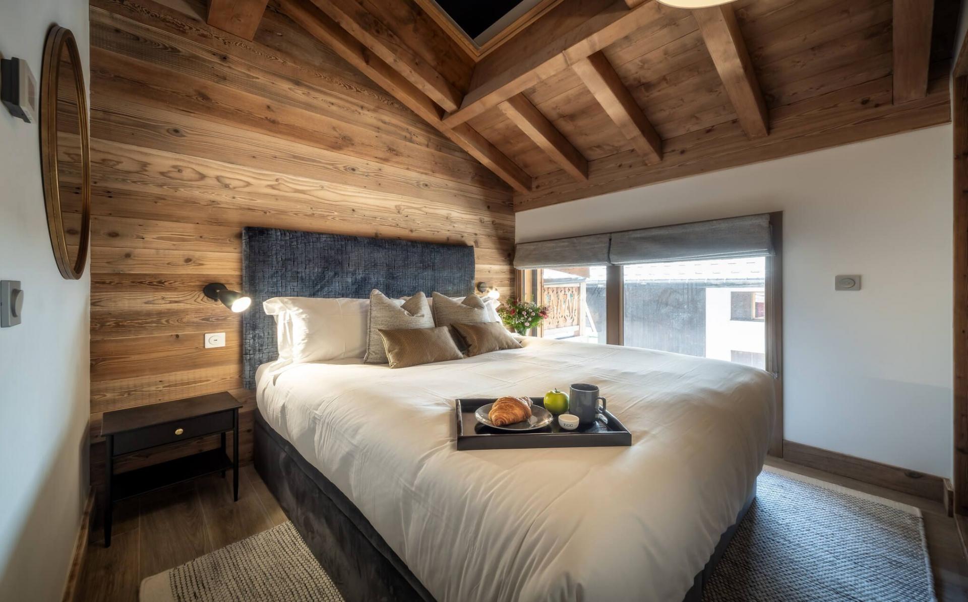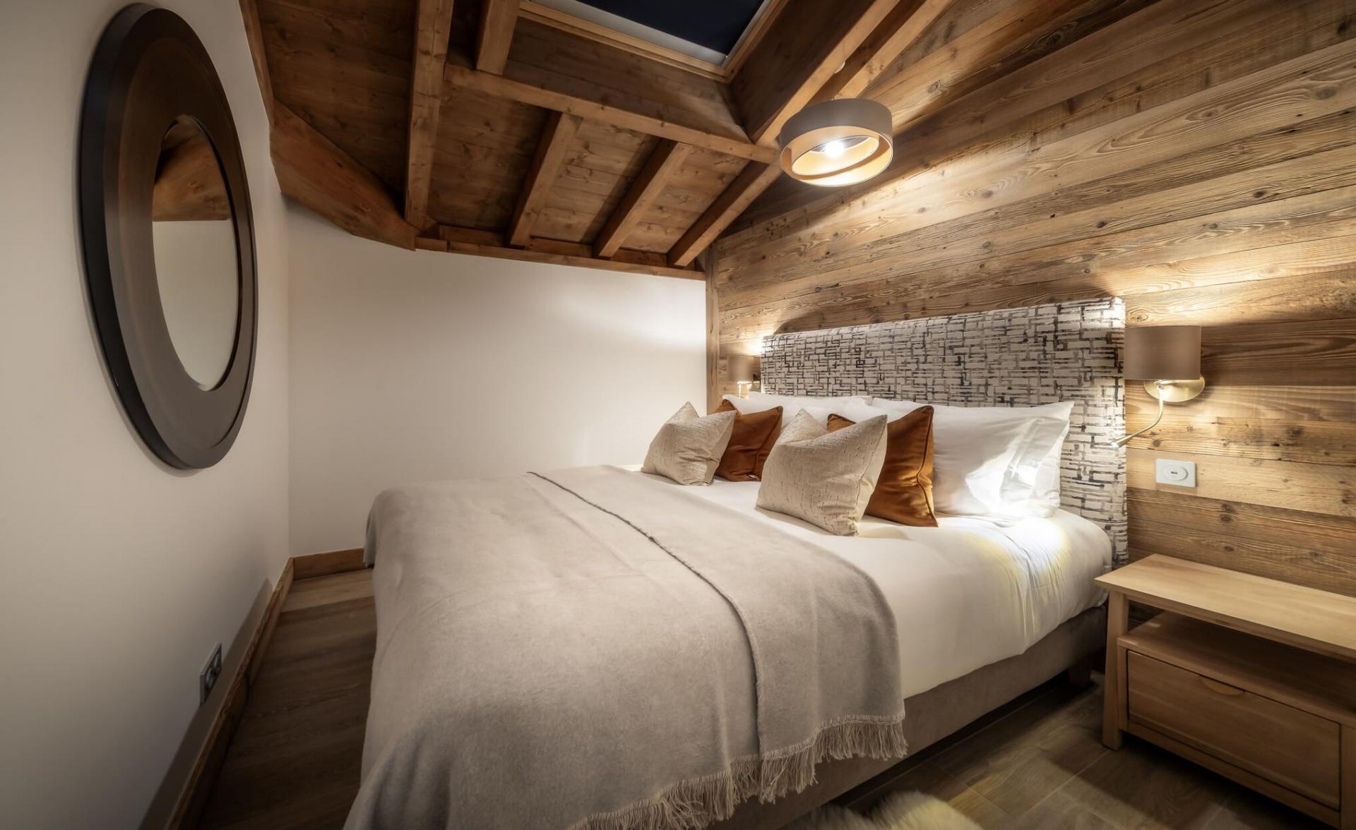 Penthouse Bellecombe features five bedrooms, sleeping groups of up to 12 guests in total. The bedrooms are intimate and welcoming, with classic wood interiors, sumptuous beds, and the majority benefiting from the same loft ceilings that feature across the living spaces. Including the master suite, there are four double bedrooms, all of which can be configured as twin rooms. A family suite containing a double/twin bed and adjoining bunk room for two rounds off the sleeping options, a perfect option for a family of four within your group. The five bedrooms are all completed by en-suite shower rooms.
