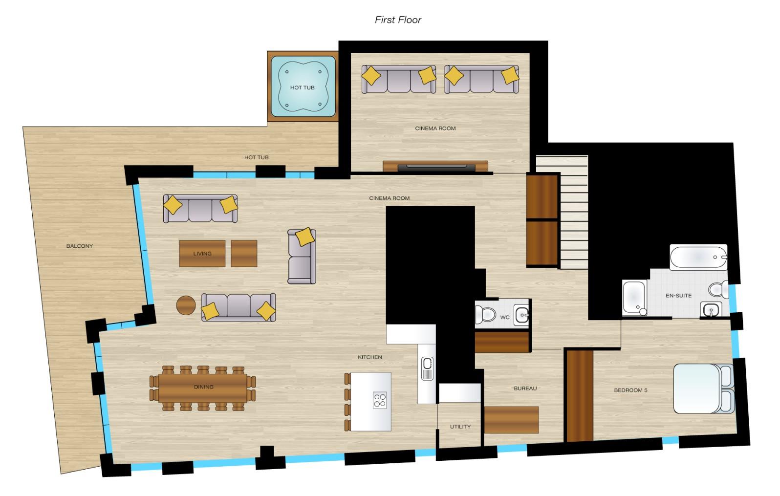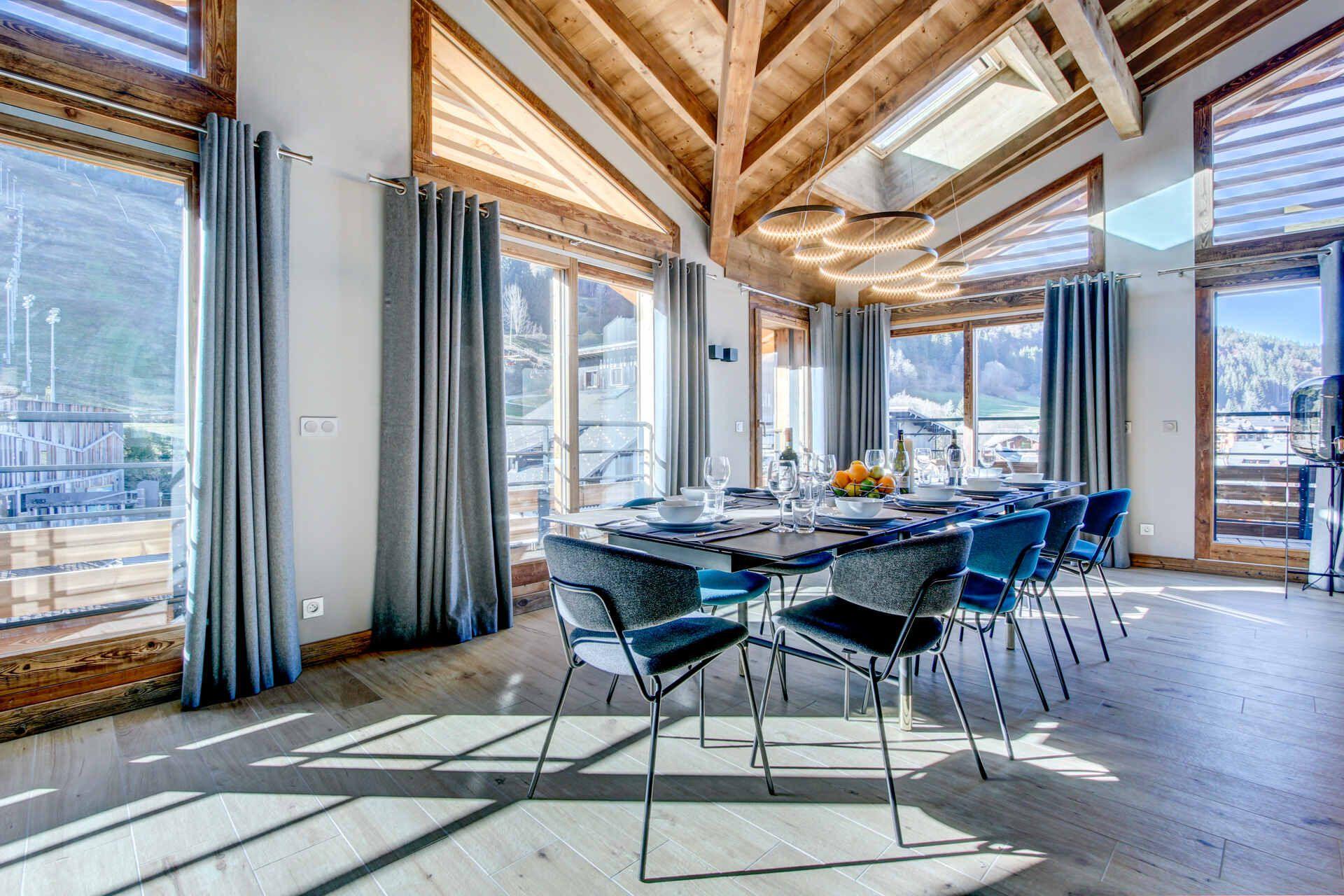 Penthouse Obelix in Morzine is a spacious, stylish penthouse apartment, occupying an unbeatable location at the base of the slopes of the Pleney. Encompassing 240m² of interior space, the apartment houses five luxurious bedrooms, providing accommodation for groups of up to 12 guests.
