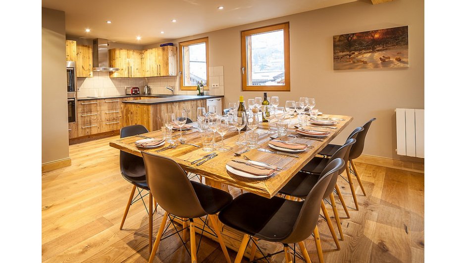 The Grange has an elegant modern living area with all the touches of a luxury property. Solid oak floors run throughout the chalet and the open plan living area is your own little slice of alpine heaven to kick back and relax after a day in the mountains. There is a Bose music player that can be connected to by Bluetooth so that you can play your own music. The living area has a large HD TV connected to English Sky TV. There are also a number of board games for your enjoyment.