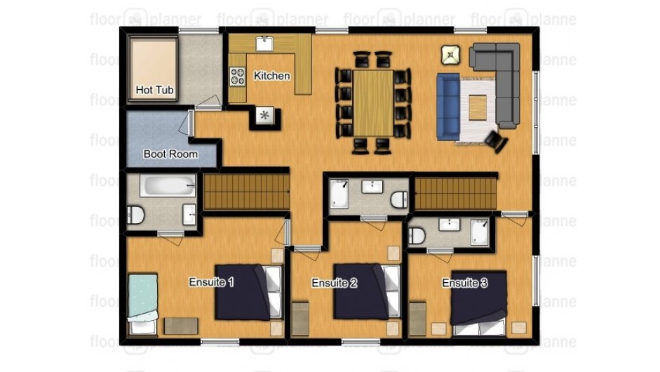 The property has a private outdoor terrace complete with hot tub. It offers a lovely setting to chill out with a glass of wine and maybe even the perfect spot to enjoy your evening canapés! Our boot room has a heated boot rack to ensure that your feet are nice and toasty in the morning.