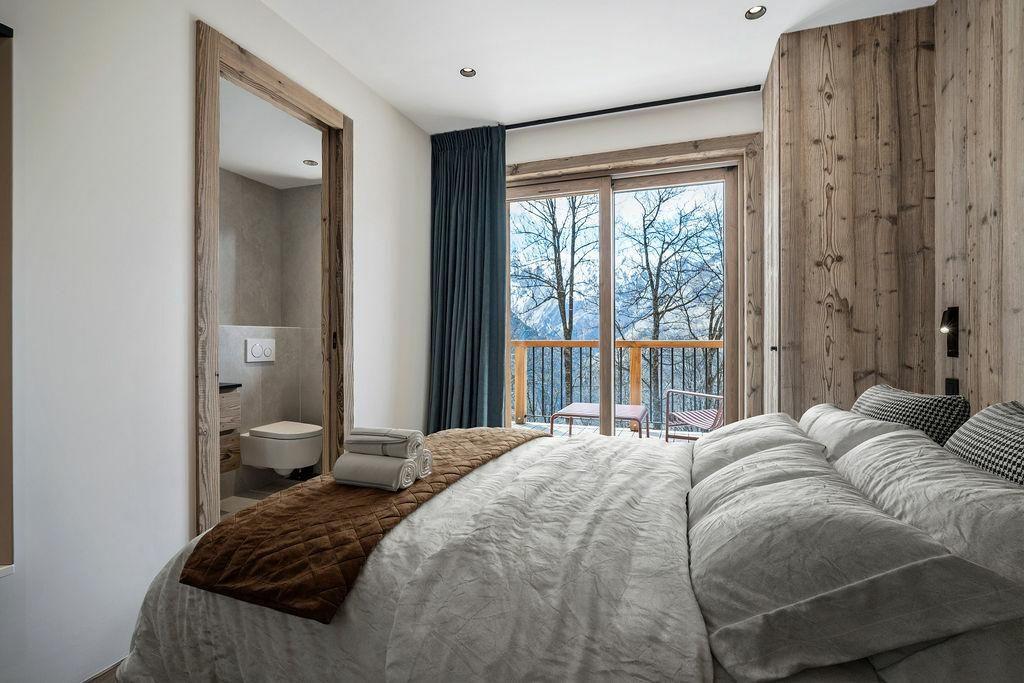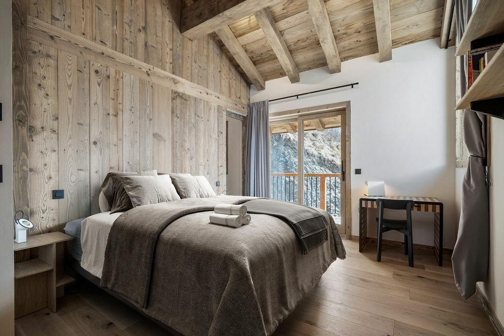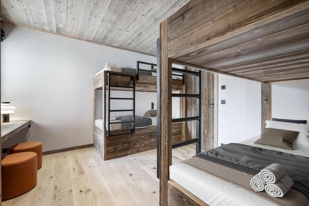 Chalet Ouréa can host up to 12 guests across five bedrooms. The bedrooms follow the same design as the rest of the chalet, featuring wooden elements and vaulted ceilings in some rooms. The furniture choice completes the alpine style with a splash of modernity. All bedrooms have en-suite facilities, whilst a select few also allow for balcony access, providing a viewing space for guests to admire the surrounding beautiful sceneries. Suitable for families, there's a children's quad bunk bedroom (sleeps 4 guests) for the little ones to be grouped together.