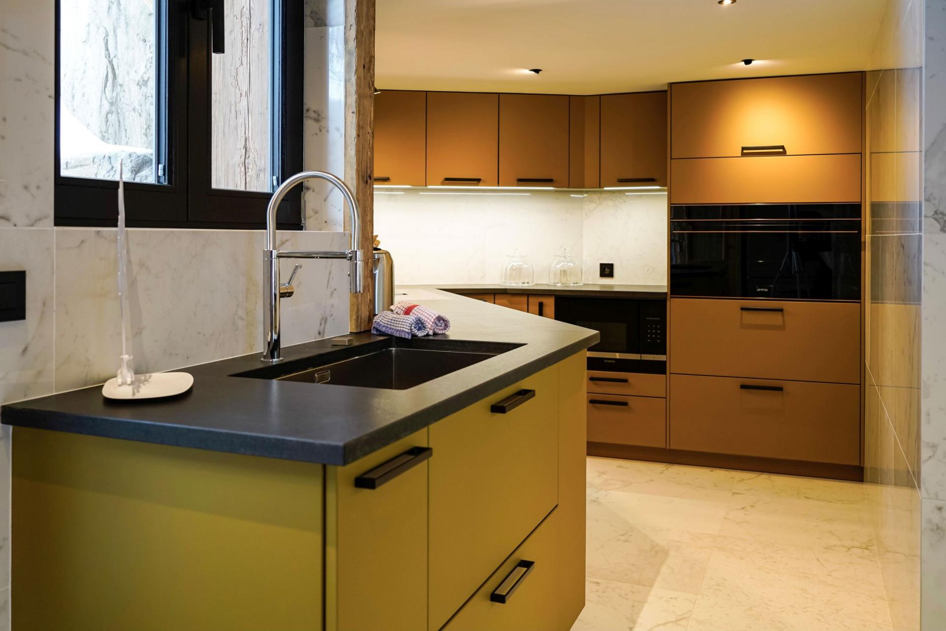 There are five bedrooms across the property for guests to choose from, with the space to sleep up to 8 adults and 5 children. The ground level of the chalet contains the majority of these rooms, with four double bedrooms, three of which can be taken as twin and one of which functions as a Master suite. Located on the lowest floor of the chalet is the quaint and cosy children's bunk room. With four bunks and a pull-out bed, this lovely space can sleep five children, making Chalet Cahokia well-equipped for those big family ski holidays. The bedrooms are all expertly furnished in a mix of new and classic mountain décor, much like the rest of the chalet, which helps to create a timeless and unique atmosphere during your stay. Each bedroom enjoys the use of an en-suite bath or shower room, with each en-suite decorated in an aesthetically beautiful distinctive, marbled design.