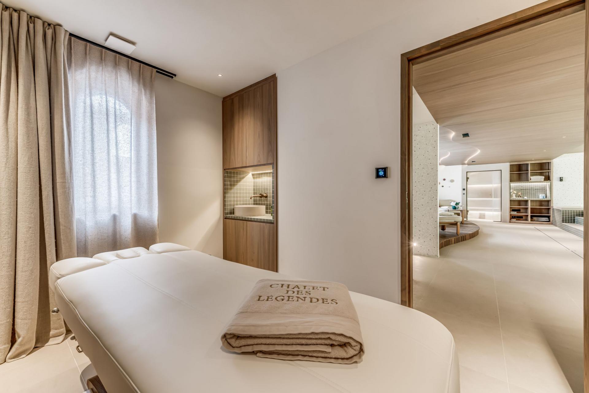 After an exhilarating day on the slopes, Chalet des Légendes has everything you need to feel rejuvenated and pampered. On the chalet's ground floor, you'll find the relaxing wellness area with an indoor swimming pool for some calming lengths. A bubbling Jacuzzi and Hammam sit by to release any tension in your muscles. Loungers also sit to one side under soothing ambient light, creating an oasis of tranquillity. The spa area also features a private massage room, should you wish to indulge in any additional treatments.