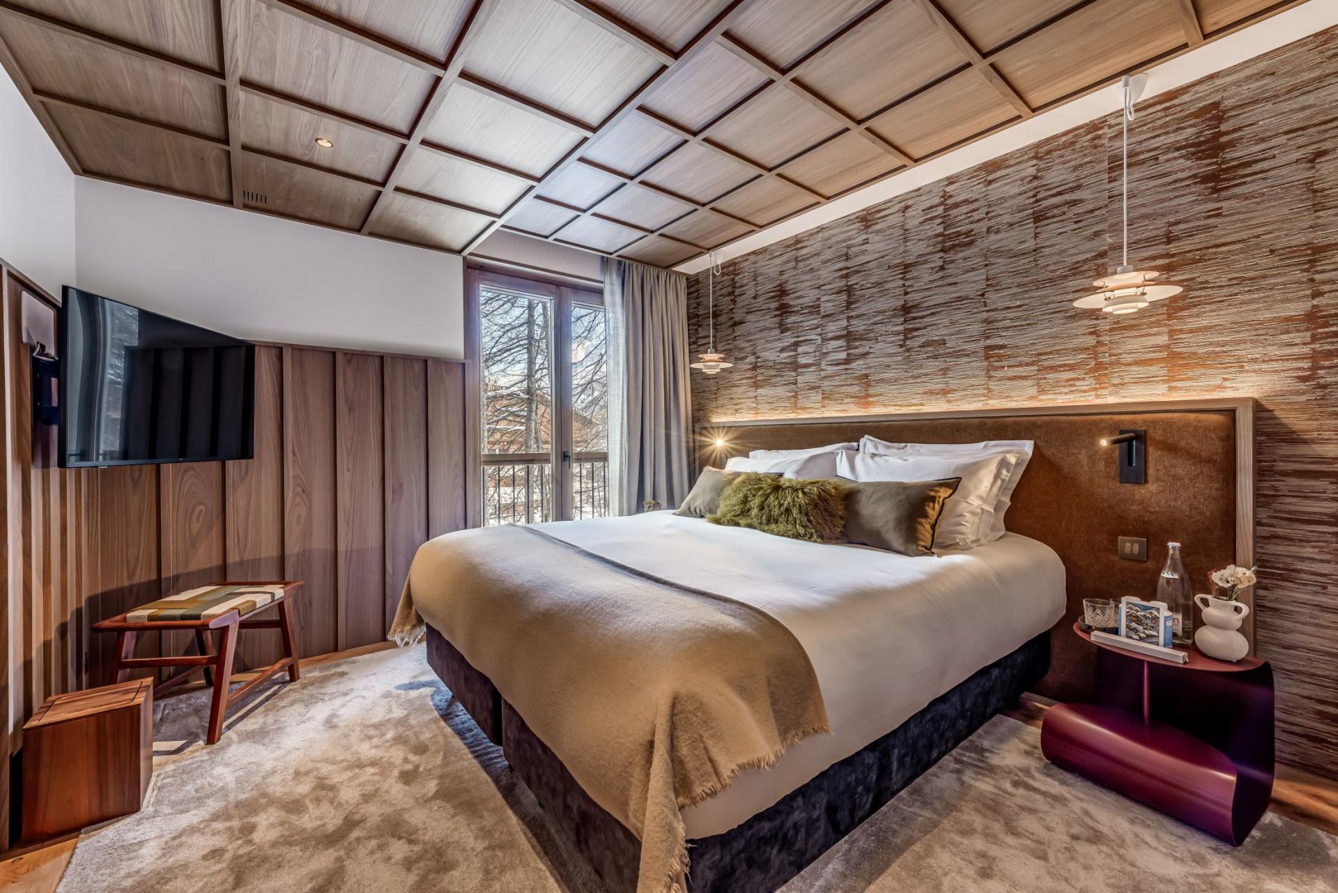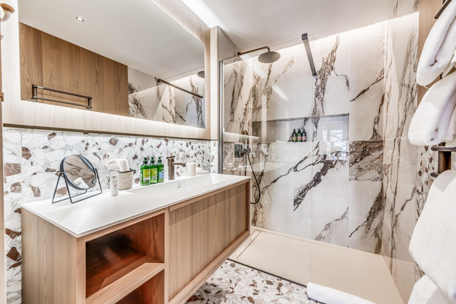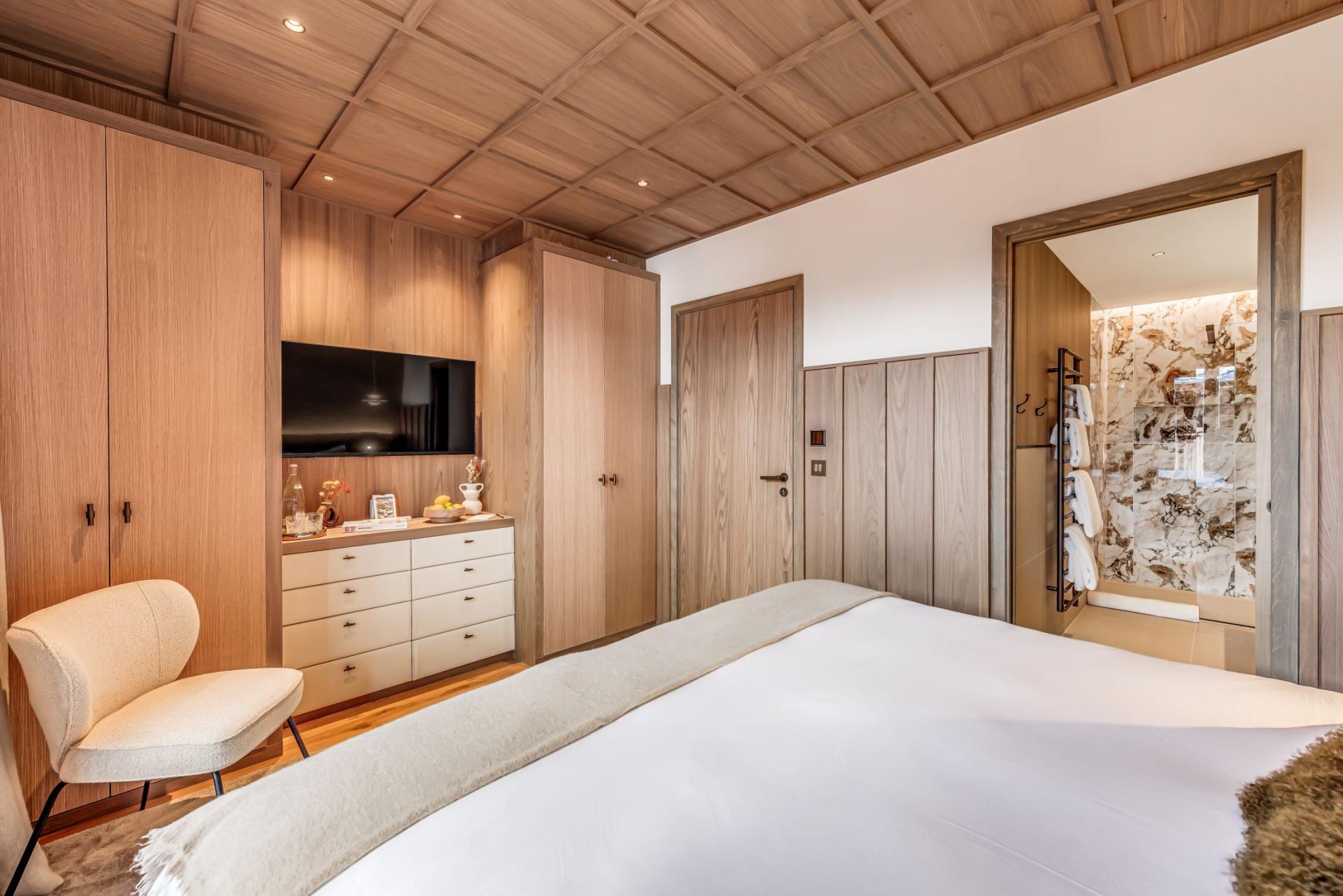 Chalet des Légendes can sleep 12 guests over its five well-appointed bedrooms, decorated with wood interiors and earthy natural hues for a well-balanced final design. The master bedroom lies on the top floor, with the option of a double or twin setup. It has a private balcony, dressing area and a lavish en-suite bathroom. Each of the other bedrooms has their own en-suite shower room, and some feature dressing areas too. Three of the remaining bedrooms are double/twin rooms, and there is also a bunk bedroom for four guests. These four bedrooms all occupy the chalet's first floor.