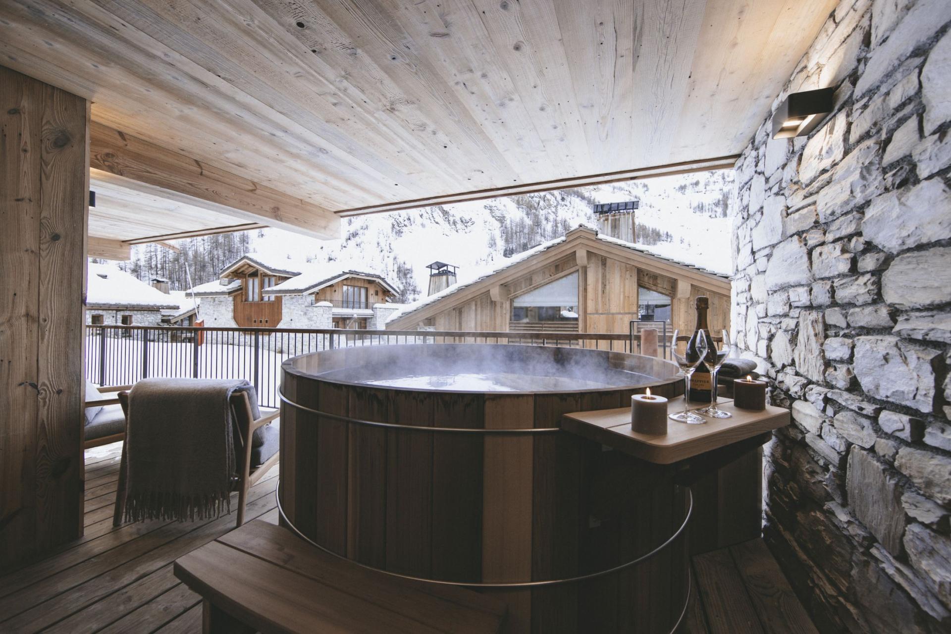 Chalet La Tene is a luxury catered chalet in Val d'Isère combining an unbeatable ski in ski out location with a wondrous assortment of facilities including a swimming pool, multiple hot tubs, and a cinema room. Housing 7 bedrooms sleeping up to 16 guests, and offering amazing views and glamorous living spaces, the property really does have everything you could ever need from a luxury ski chalet in Val d'Isere.