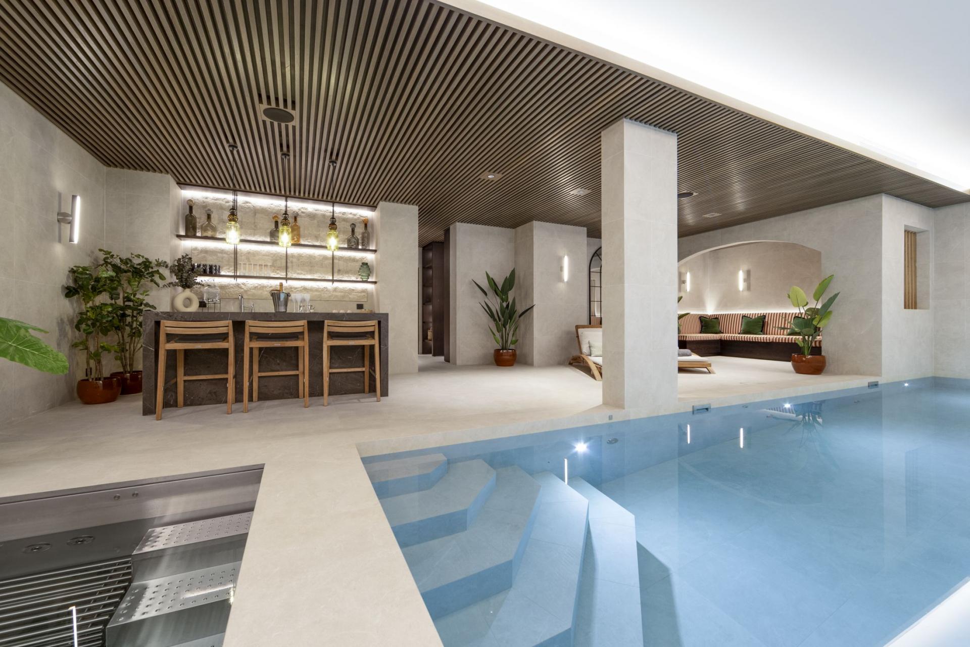 Chalet La Tene has a full accompaniment of wondrous spa facilities, providing its guests with an unbeatable way to unwind after a full day of skiing in Val d'Isère. There are two outdoor hot tubs on the chalet's terrace, allowing for a comforting soak in the fresh mountain air and the light of the setting sun. More soothing bubbles await inside, in the chalet's fabulous spa area, which is complete with a sunken indoor Jacuzzi, as well as an indoor swimming pool. A sauna and Hammam offer other relaxation options, as does the chalet's private massage room. On this floor is also where you will discover the cinema room. This deluxe home movie theatre provides guests with plush red seating, a large projector screen, and a handy drinks bar to save you making trips upstairs.