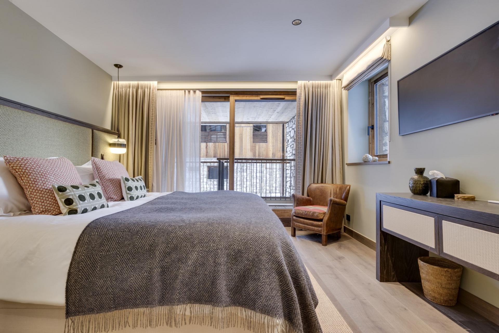 Chalet La Tene features six double bedrooms and one quad bunk room, sleeping a total of 16 guests. The six double bedrooms have a distinguished style that is both modern and inviting, and all of which have direct access to a balcony area. Chalet La Tene has great flexibility in sleeping arrangements, with all double rooms being able to split into twin beds. Meanwhile, the bunk room is great for children, making the chalet an appealing option for luxury family ski holidays to Val d'Isère. All seven bedrooms have an elegantly appointed en-suite bath or shower room.