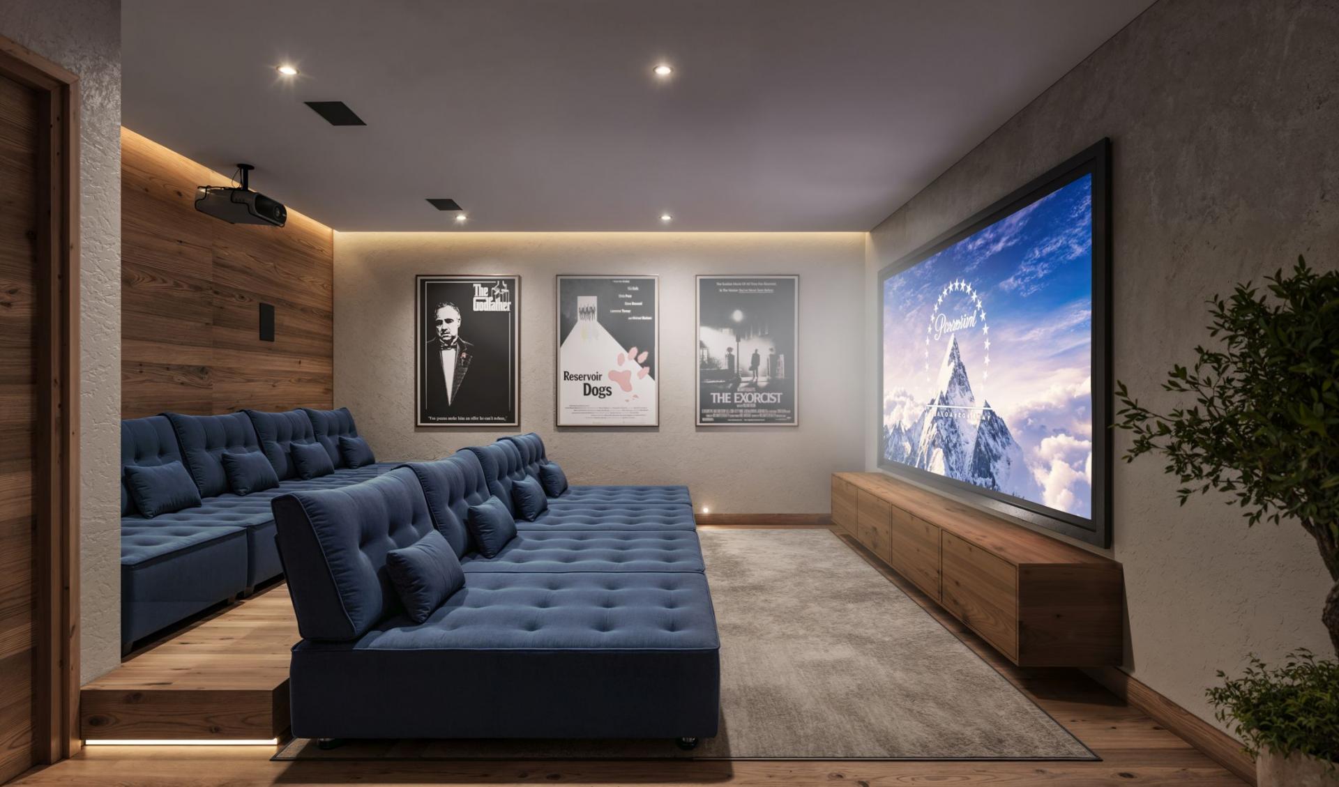 Next tot the wellness area in Chalet Breithorn you will find a state-of-the-art cinema room, featuring two tiers of sumptuous seating and a big screen projector for the quintessential movie night.