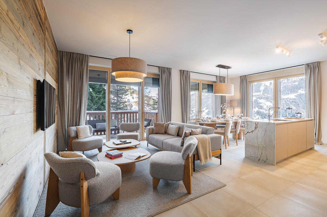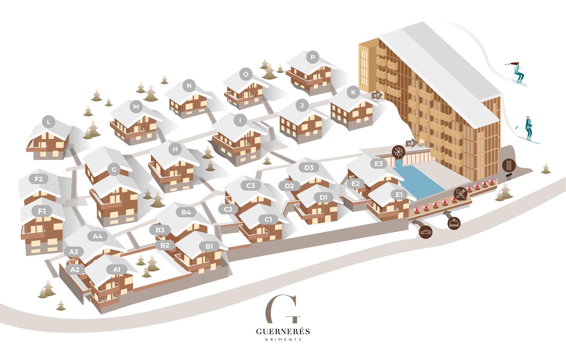 The Guernerés Residence is a collection of luxury chalets and apartments, nestled overlooking the charming resort of Grimentz, located adjacent to the ski slopes.