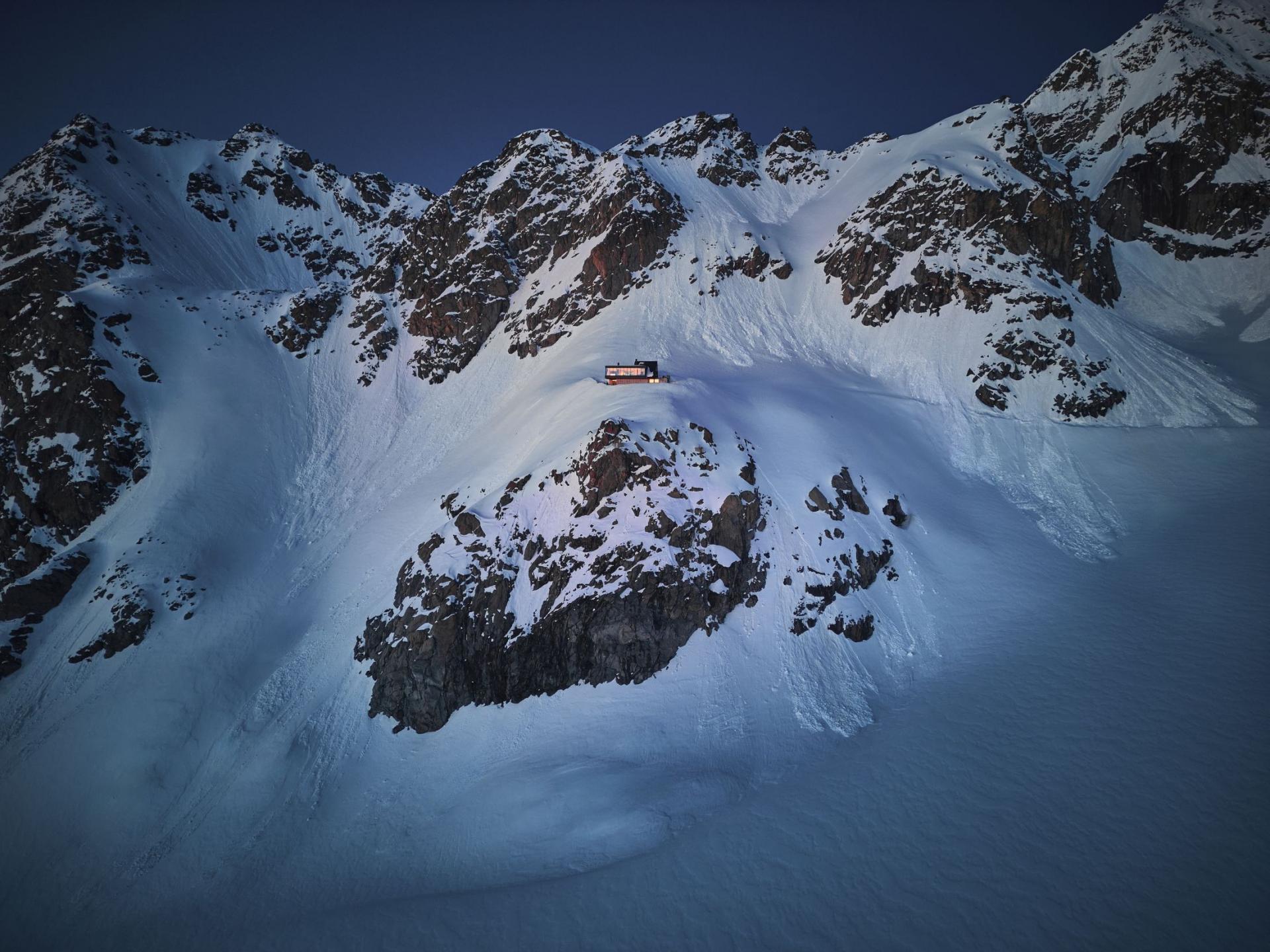 Accessing Cabane Tortin is as much a part of the experience as staying. While most guests will choose to arrive via a tracked snow vehicle which traverses across the glacier terrain, or via a helicopter arrival, advanced skiers have several other options. You can choose to arrive via an off-piste descent from the top of Mont Fort with the chalet's ski guides, or alternatively, from a guided ski-touring ascent from Verbier or a surrounding nearby location.