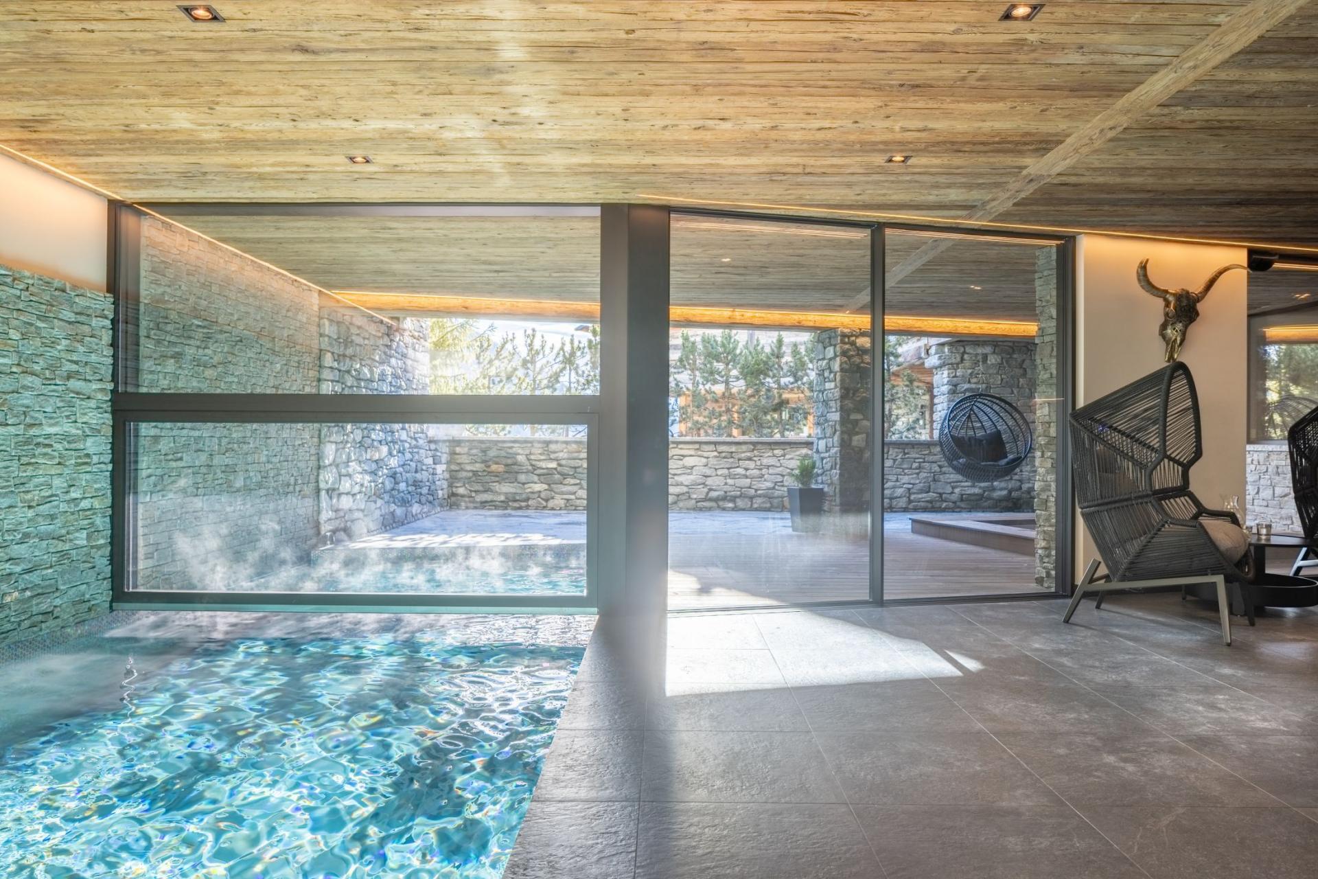 The pinnacle of staying at the Calima Estate has to be the access to the two private spa areas. As well as spacious relaxation areas in the spa, one of which grants you more splendid views across the mountains, you will also get the luxury of two indoor pools and two indoor jacuzzis to take a soothing dip in. There is another hot tub on the outside terrace for more relaxation, while one of the spa areas features a sauna, Hammam and massage treatment room. A stay at the Calima Estate is as much a luxury spa getaway as it is a ski holiday.