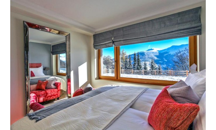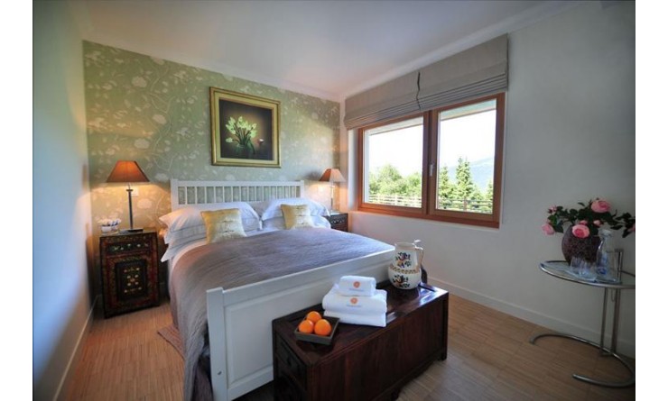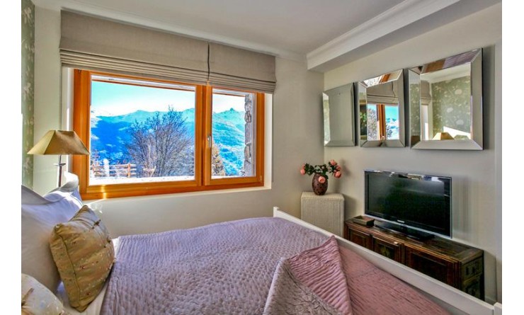 The master suite is located on the entire top floor of the house, and has spectacular views of the Matterhorn range of mountains. The suite features a romantic free-standing bed and a spectacular bathtub for two, a walk-in-wardrobe, and sitting and television area.
