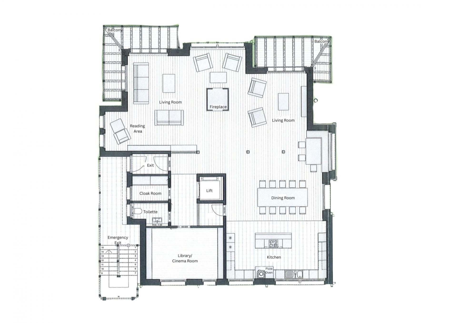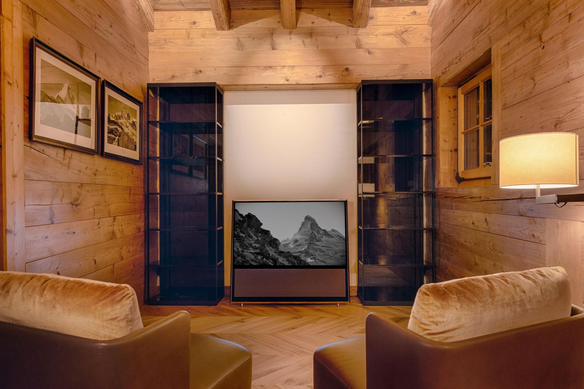 Another way to unwind at the chalet may be found on the top floor, which, alongside its glorious main living space, features a separate TV room. Escape here for a quiet movie night, or use it as a library for some silent reading or reflection in the comfort of the armchairs.