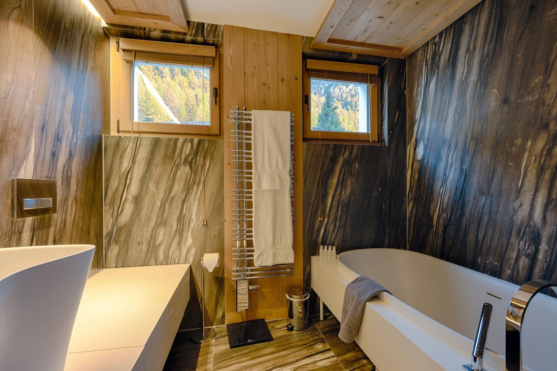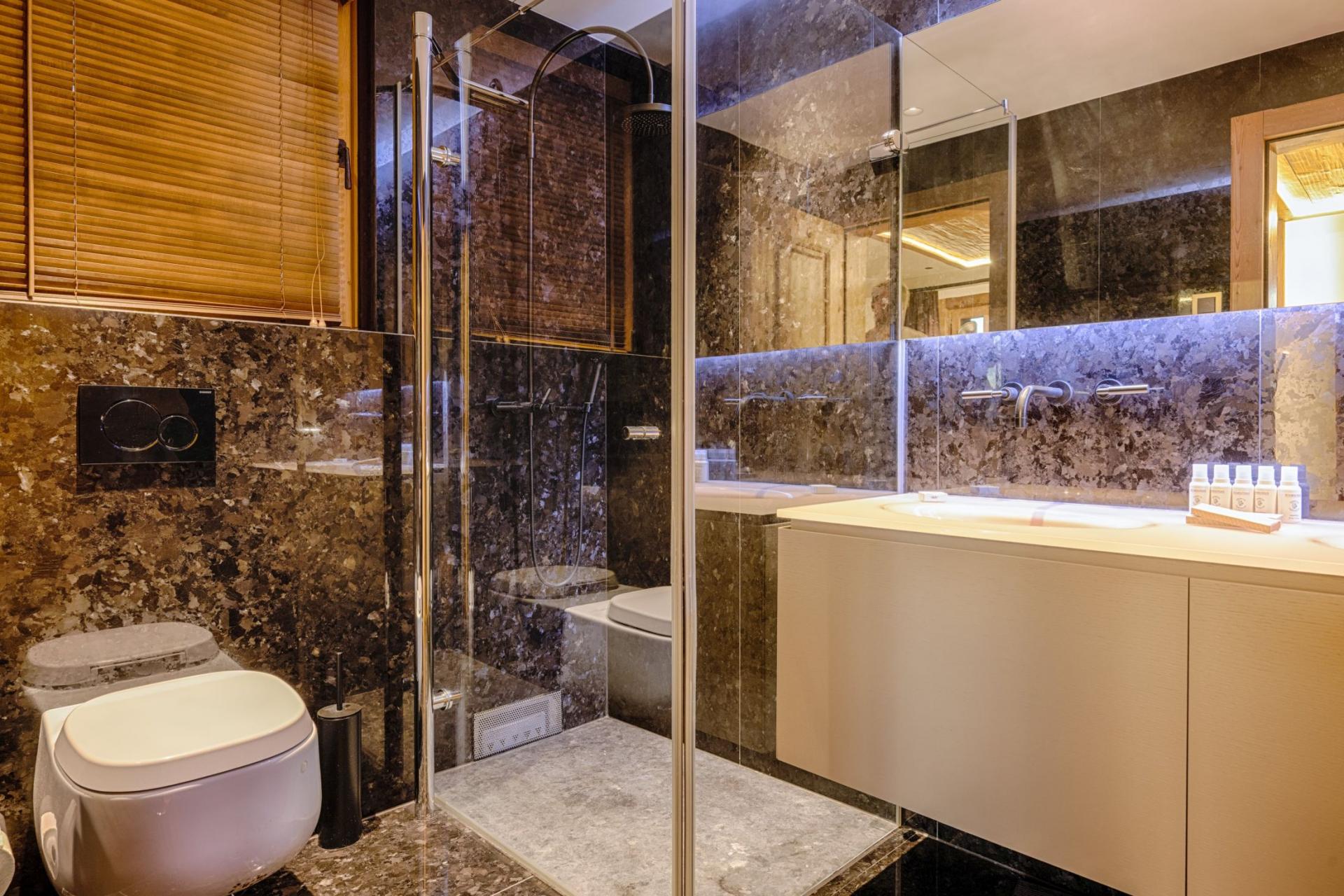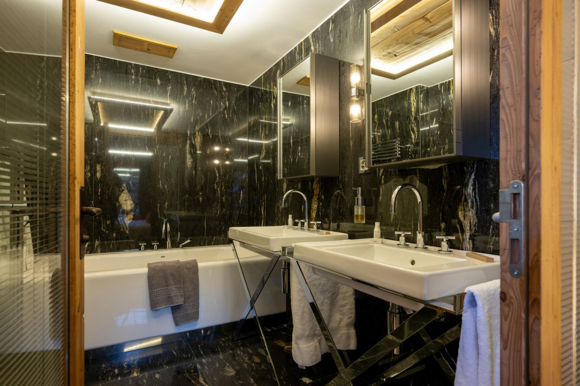 Chalet Kemaura houses seven double bedrooms, offering the capacity to sleep up to 14 guests overall. The bedrooms are spacious and comforting, with a cosy, authentic alpine charm to their design. Five bedrooms sit across the middle floor of the property, each complete with a lavish en-suite bathroom, the majority with separate showers. All these rooms also offer shared or private balcony access, some facing the Matterhorn. The final two en-suite bedrooms sit on the bottom floor, which offer the flexibility of being taken as either double or twin rooms.