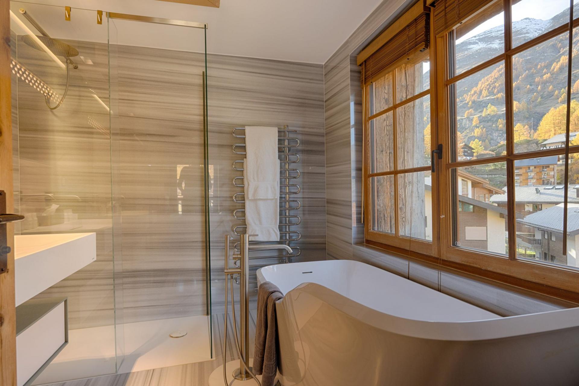 From the chalet, you are an easy 11-minute walk to the main Matterhorn Express gondola station, the primary access point into the Matterhorn Ski Paradise ski area. For those who wish to save their legs for skiing, a bus stop is located 1-minute walk from the chalet, where an electro-bus will whisk you to the gondola station in minutes. This electro-bus can also drop you off at one of the other main lifts in Zermatt, including the Sunnegga Express funicular, and the Gornergrat Railway.