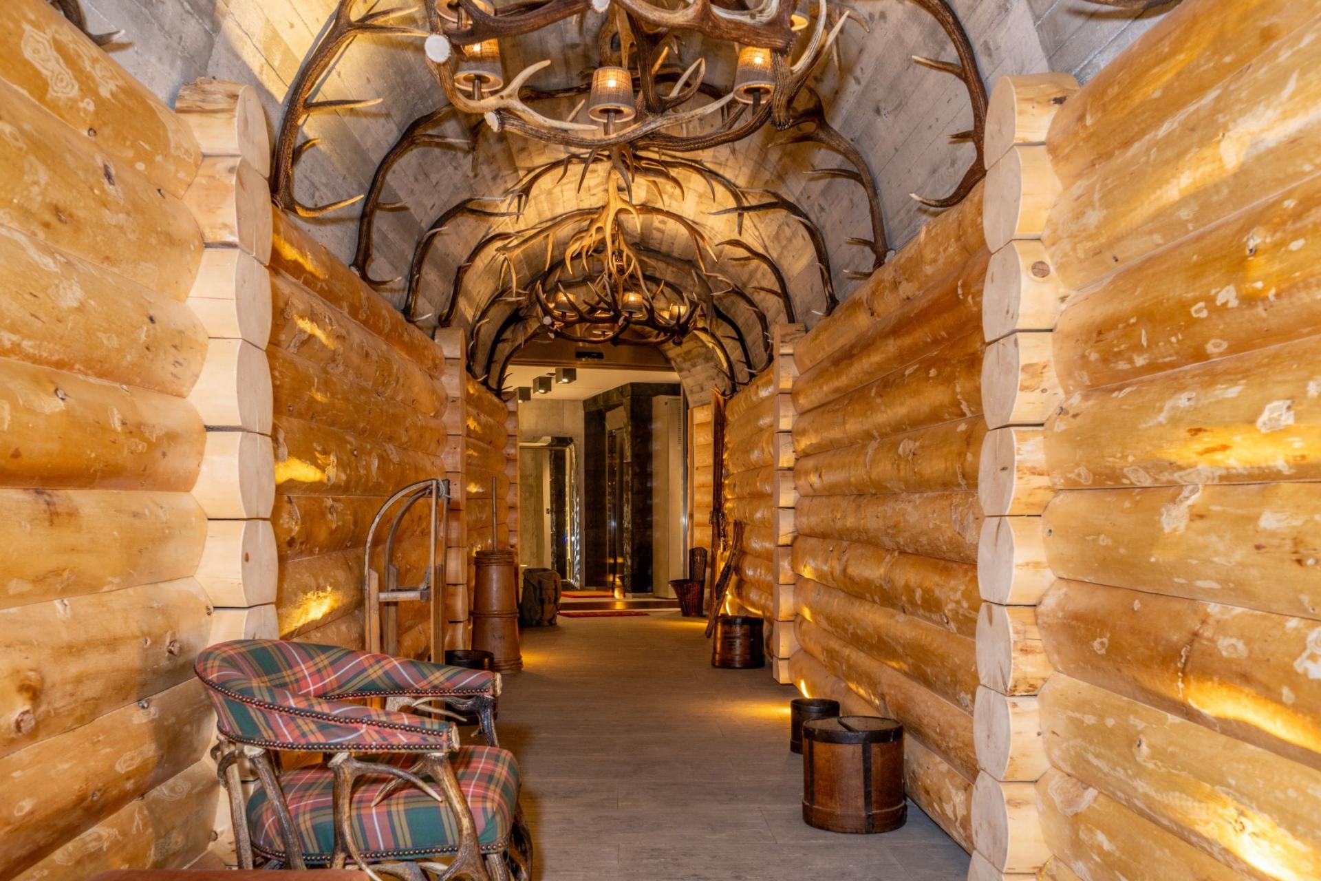 The chalet is accessed from the street, where through a beautiful antler-adorned tunnel, you are brought to an elevator with access to all floors of the property. The chalet also has private laundry facilities.